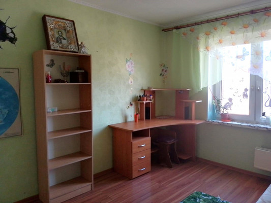 Квартира двухсторонняя, светлая, уютная, с хорошей планировкой. Общая площадь 54м2, изолированные комнаты 20м2+12м2, кухня 8,6м2, застекленная лоджия, большая гардеробная, сан. узел совмещенный.