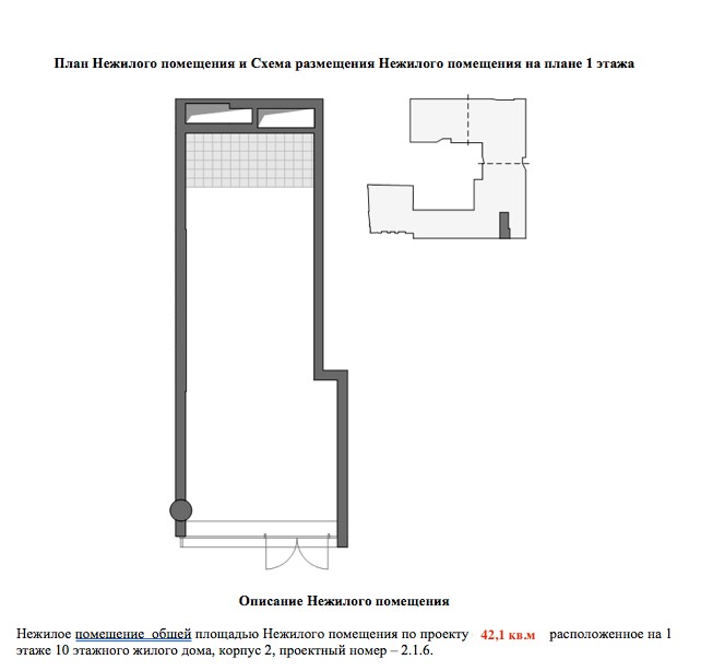 - Общая площадь 42.1 м²