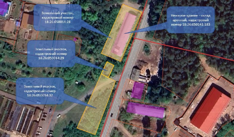 К продаже представлено здание на з/у общей площадью 3127 кв.м. ОБРАЩАЕМ ВАШЕ ВНИМАНИЕ: ПРИНАДЛЕЖИТ ПРЕДПРИЯТИЮ И РЕАЛИЗУЕТСЯ НА ЭЛЕКТРОННЫХ ТОРГАХ на площадке ЭТПРФ, НОМЕР ИЗВЕЩЕНИЯ: BNKOA00014664. Состав имущества: Земельный участок №1 Площадь: 1567 кв.м (14) Кадастровый номер: 18:26:050014:28 Категория земель: Земли населенных пунктов Разрешенное использование: Эксплуатация и обслуживание здания арочного склада Местоположение: г. Ижевск, совхоз «Медведево», участок 48/1 Обременения: отсутствуют Земельный участок №2 Площадь: 1408 кв.м (13) Кадастровый номер: 18:26:050014:32 Категория земель: Земли населенных пунктов Разрешенное использование: Обслуживание арочного склада в стадии разрушения Местоположение: г. Ижевск, совхоз «Медведево», 48/2 Обременения: отсутствуют Земельный участок №3 Площадь: 152 кв.м (4) Кадастровый номер: 18:26:050014:29 Категория земель: Земли населенных пунктов Разрешенное использование: Для эксплуатации и обслуживания склада для лакокрасок и ядов Местоположение: г. Ижевск, совхоз «Медведево», 48-6 Обременения: отсутствуют Здание склада Площадь: 536,1 кв.м Кадастровый номер: 18:26:050141:183 Наименование: Склад арочный Назначение: Нежилое Этажность: 1 этаж (подземных этажей нет) Кадастровый номер: 18:26:050141:183 Обременения: отсутствуют Все объекты сопровождаются выписками из ЕГРН и справками о техническом состоянии (справка №490 от 17.09.2025, прилагаемой к Документации (Раздел XI). Особенности комплекса Все объекты расположены компактно на территории совхоза «Медведево». Основная специализация — складское назначение. Один из участков имеет специальное назначение для хранения лакокрасочной продукции и опасных веществ. Здание склада находится на первом участке и имеет площадь более 500 кв.м. Земельные участки - равнинные, частично заросшие древесно-кустарниковой растительностью. С северной части от объектов расположены малоэтажные жилые дома, с западной части - Ижевский плодопитомник, с восточной, северной и южной сторон – малоэтажные жилые дома и незастроенные земельные участки. Транспортная доступность хорошая. Расстояние до остановки общественного транспорта "Изумрудная улица" 0,179км (2 минуты пешком). Возможна парковка непосредственно на подъезде к объектам. [#7531993#]