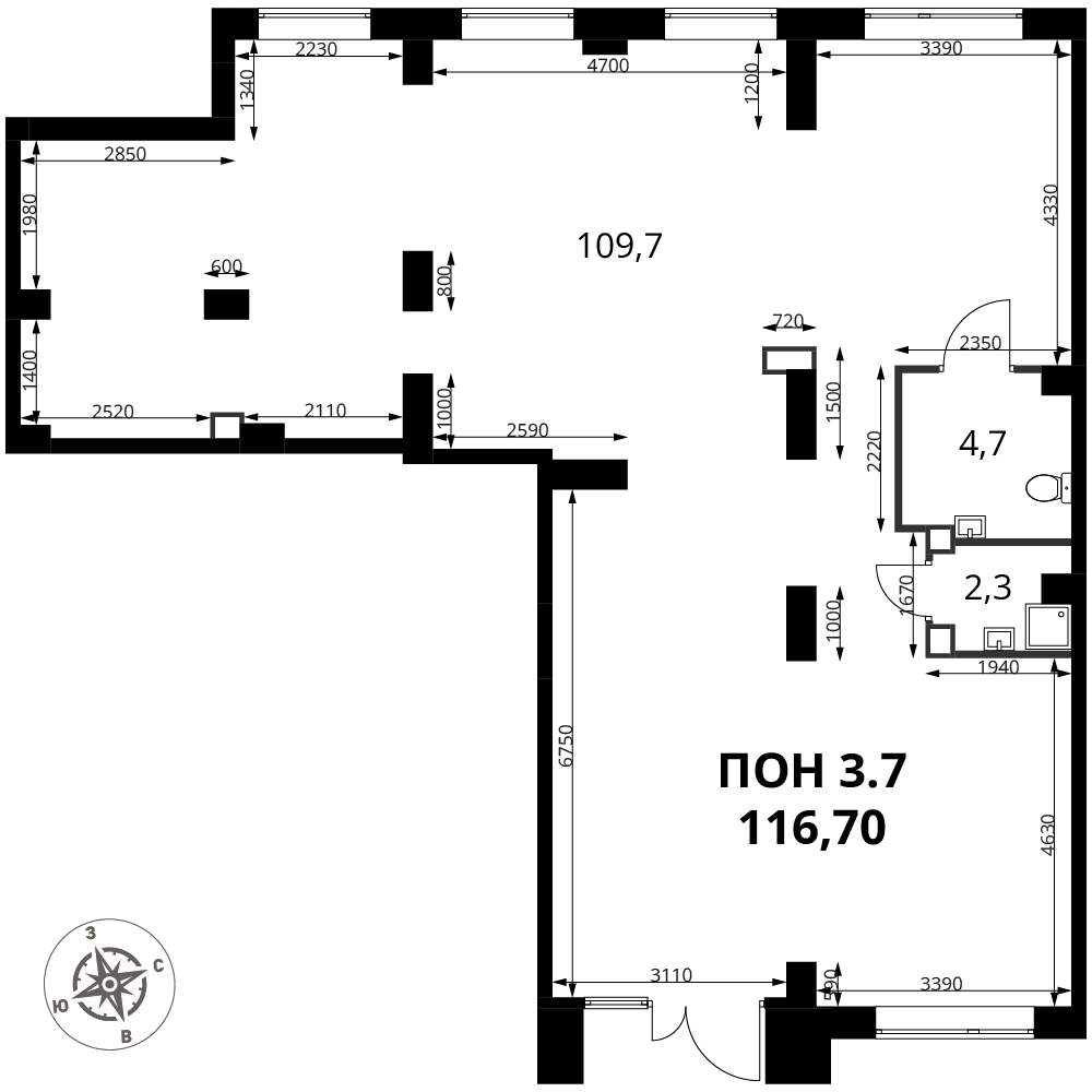 - Общая площадь 116.7 м²