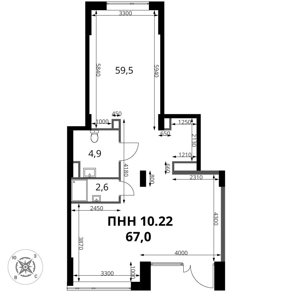 - Общая площадь 67 м²