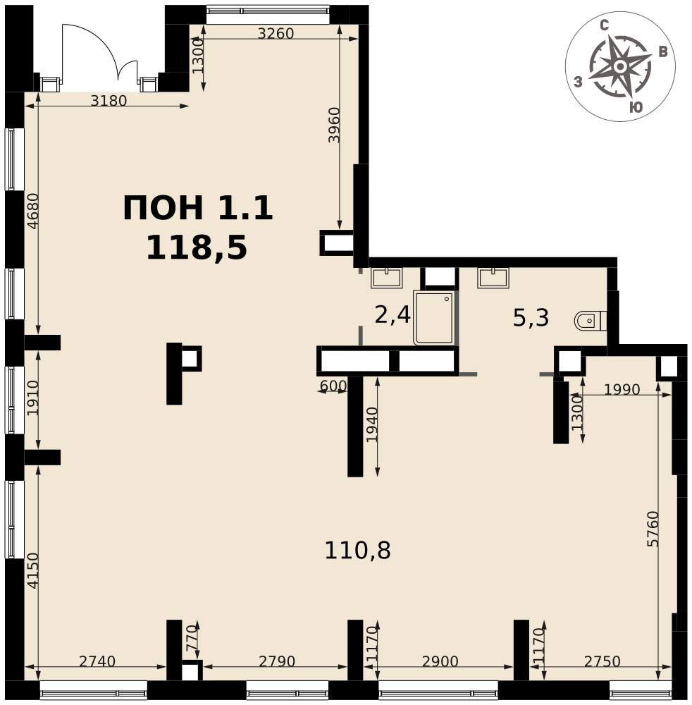- Общая площадь 118.5 м²