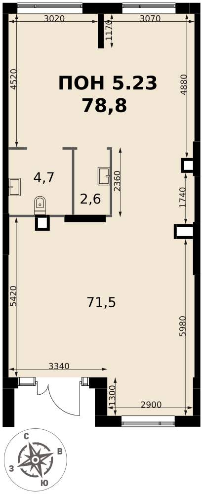 - Общая площадь 78.8 м²