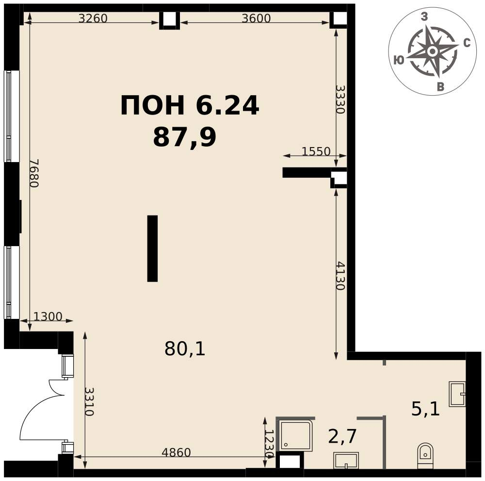 - Общая площадь 87.9 м²