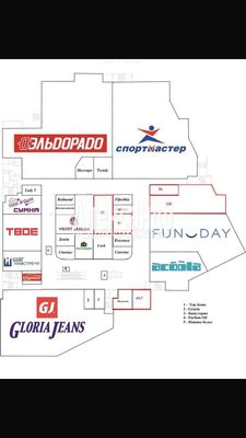 В ТРК представлены популярные бренды: "Перекресток", ASKONA, MODIS, "Улыбка Радуги", "Мегафон", "Рив Гош", "Спортмастер", "Буквоед", Kari, FAMILIA, "Бургер Кинг".