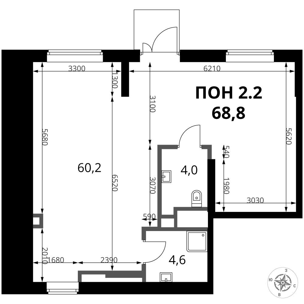 - Общая площадь 68.8 м²