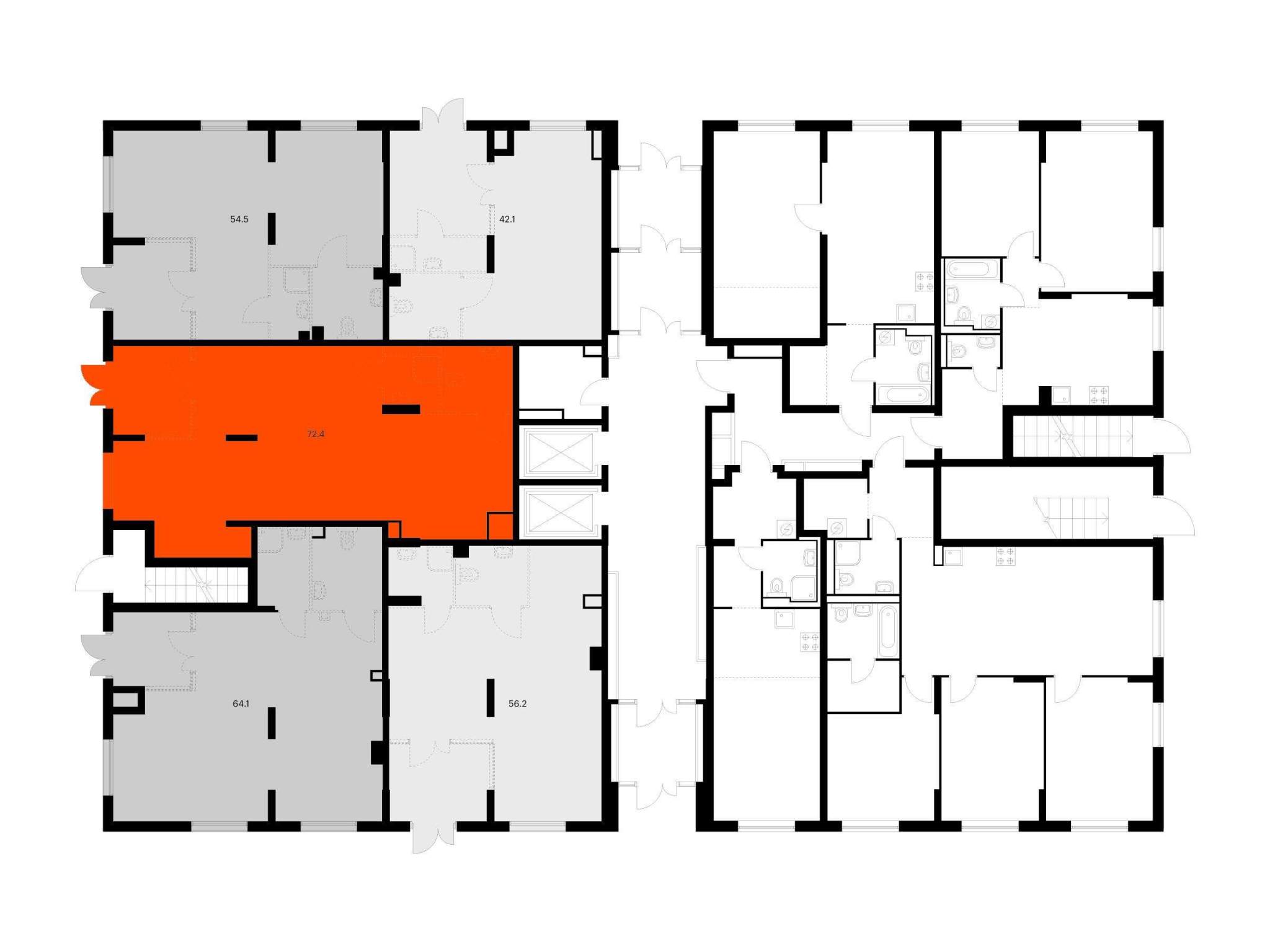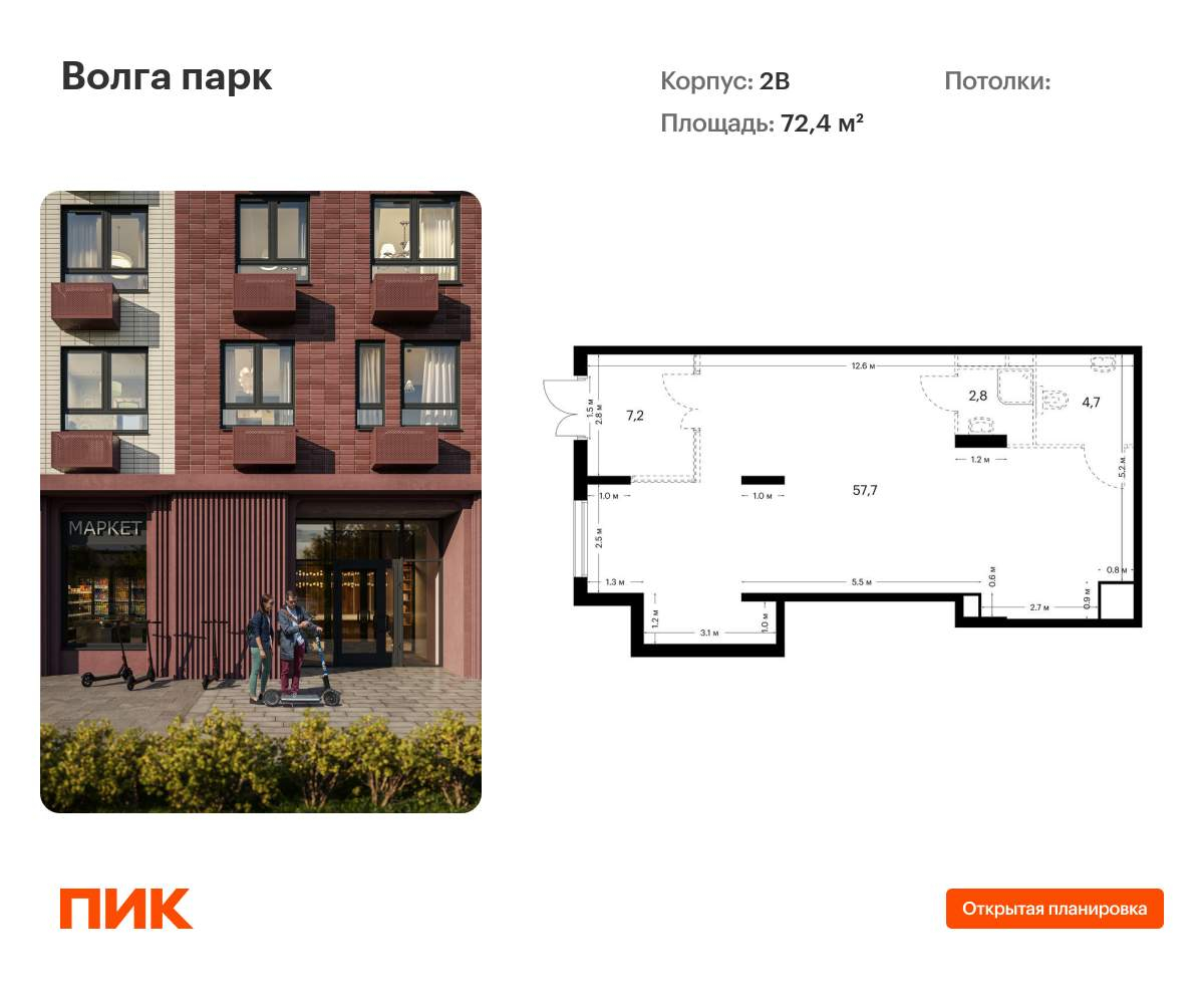 - Общая площадь 72.4 м²