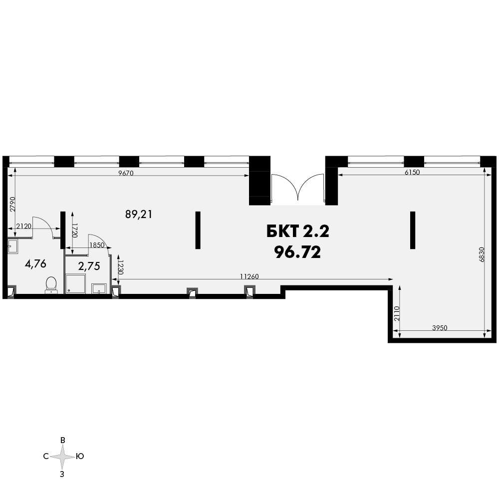 - Общая площадь 96.7 м²