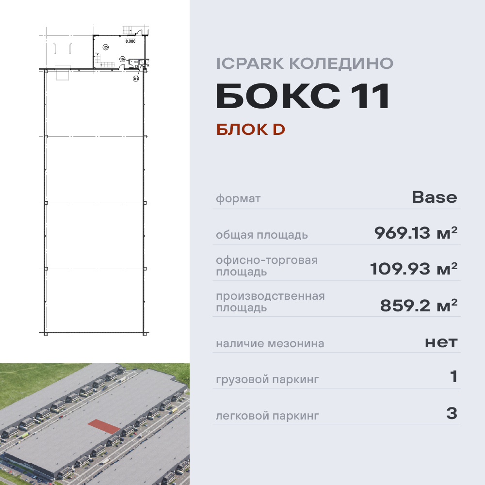 Продается новое готовое к заезду производственно-складское помещение вблизи МКАД в промышленном парке INDUSTRIAL CITY -ICPARK Коледино. Планировочное решение включает в себя пространство для производства, склад или логистику 859,2 кв.м, а также офисную часть 109,93 кв.м. Объект расположен в южном направлении с выездом на Симферопольское шоссе (М-2). Расстояние от МКАД — 24 км. Координаты: 55.373194, 37.575127 Продажа осуществляется напрямую от собственника парка, что гарантирует отсутствие каких-либо комиссий и скрытых платежей! Формат Point. Блок D, Бокс 11. ОСНОВНЫЕ ХАРАКТЕРИСТИКИ: - Класс: A - Температура: Сухой склад - Автоматическая спринклерная система пожаротушения - Высота: 8 м - Нагрузка на пол: 5 т/кв.м - Высококачественные бетонные полы с антипылевым покрытием и упрочняющим слоем - Сетка колонн: 12x24 - Ворота: на нулевой отметке КОММУНИКАЦИИ: - Электричество: 25 кВт (возможно увеличение мощности) - Вентиляция: приточно-вытяжная - Водоснабжение, канализация - Индивидуальные приборы учета ИНФРАСТРУКТУРА: - Парковки для транспорта: для грузовых авто — 1 место, для легкового авто — 3 места - Доступ к производственно-складским помещениям 24/7 - Охраняемая территория - Видеонаблюдение - Скоростной интернет и телефония ДОПОЛНИТЕЛЬНО: - Собственная профессиональная управляющая компания - Клининг - Консьерж-сервис - Мобильное приложение - Маркетплейс услуг - Кафе на территории - Зоны отдыха и спортивные площадки Готовы предоставить подробную информацию и организовать просмотр! [#8189947#]