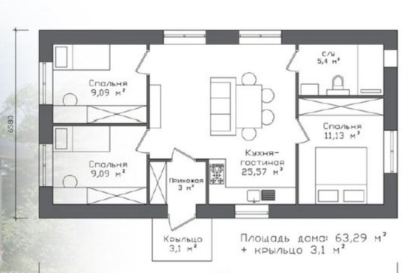 Кирпичный дом 65 кв.м. на земельном участке 6 сот. ИЖС Земельный участок ровный и прямоугольной формы, есть пространство для размещения бани/гаража/зоны отдыха.