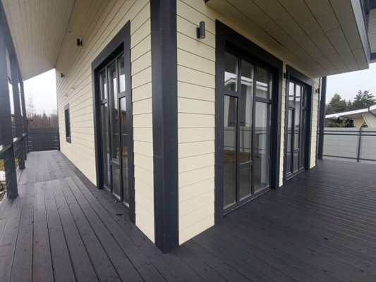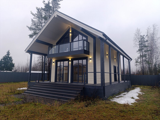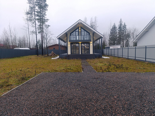 Арт. 127595273 Предлагается к продаже новый уютный жилой дом, площадью 104 м.² в ДНП "Агалатово". На первом этаже:прихожая, гардероб,котельная, санузел и просторная, светлая кухня-гостиная. На втором этаже две спальни, санузел и мастер спальня с выходом на балкон со стеклянным ограждением. Во всех комнатах дома установлены качественные панорамные окна. Просторная терраса по периметру дома для комфортного отдыха на свежем воздухе. Полная чистовая отделка под ключ! Фундамент- бетонные сваи. Отопление : первый этаж - водяные тёплые полы(электрический котел), второй этаж умные электрорадиаторы. Участок, площадью 10 соток. Разработан,огорожен забором по периметру,откатные ворота.Въезд на линию через шлагбаум. Водоснабжение: из собственной скважины 33 метра. Канализация-перерабатывающая биостанция.Электричество 15 кВт. На участок подведен магистральный газ (оплачен). Локация. Посёлок Агалатово в 1км. Магазины,школа,детсад. Всё в шаговой доступности. Остановка маршрутки 4-5 минут пешком. Дом подходит под семейную ипотеку.