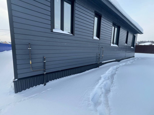Внешняя отделка — металлосайдинг. Внутренняя отделка — имитация бруса, пол — ламинат. Утепление 250мм+200 мм, что позволяет значительно сократить затраты на отопление и поддерживать оптимальный микроклимат внутри— Надежный фундамент: