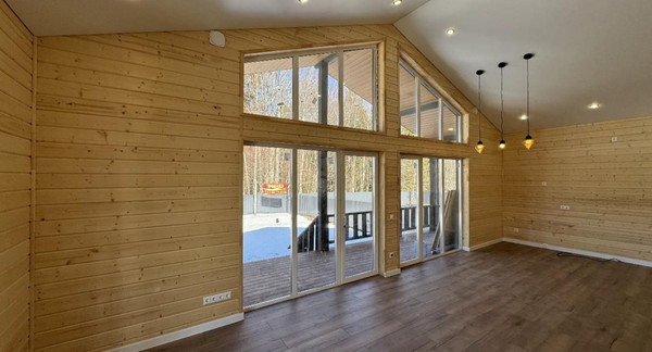 ОТДЕЛКАСнаружи: имитация буса/ планкенВнутри: имитация бруса, ламинат, натяжной потолок.Санузел: плитка