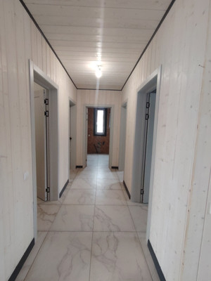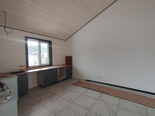 Дом общей площадью 99 кв. м с террасой, построен в 2026 году, 1 этаж, высота потолка 2.5 метра, высокие потолки в зоне кухни-гостиной. Дом построен по каркасной технологии. Фундамент-ленточная плита, утепление стен 180 см. Во всем доме тёплый пол от электрического котла Thermex (в комнатах ламинат, в остальных помещениях керамогранит. Крыша- металлочерепица. Сделана вентиляция, установлены качественные стеклопакеты.
