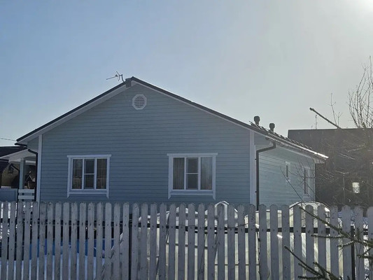 Уютный дом 90.8 м2 построен в 2024г. по теплой каркасной технологии.Утепление стен, пола и потолков 200мм (минвата).Снаружи покрашен в свежий голубой цвет с белыми наличниками. Фундамент ж/б сваи на глубину до 3,5 м.Крыша металлочерепица со снегозадержателями. Окна двойной стеклопакет.Внутри интерьеры выполнены в современном стиле. Дом оборудован системой "Умный дом": с управлением через программу или голосом: подсветка с датчиками движения, умный карниз, выключатели, розетки, вытяжка и котел.Возможность включить или выключить любое оборудование дома удаленно (голосовой помощник можно поставить любой).На полах жилых помещений ламинат, в с/у и бойлерной плитка. Стены оклеены обоями, в с\у плитка.По всем помещениям дома обустроены водяные теплые полы.