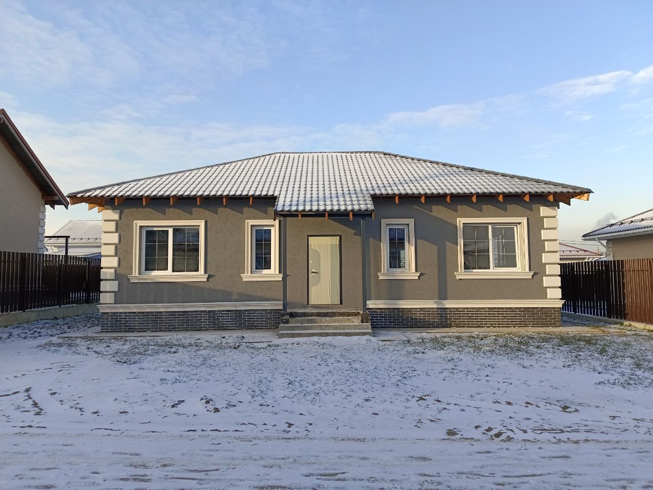 Новый 1-этажный коттедж 118,6 кв. м на участке 6 соток в КП «Новая Дятловка». Ключи – февраль 2025г. Завершается внешняя отделка фасада. Дом без внутренней отделки. Семейная и IT ипотека - 6%. Планировка по проекту: Просторная кухня-гостиная 36 кв. м с окнами на три стороны света и панорамной дверью на крытую террасу; три комнаты (12,10/14,5/14,4 кв. м), ванная комната, бойлерная, гардеробная, прихожая, гостевой с/у. Высокие потолки- 3 метра. Под кровлей можно оборудовать дополнительное помещение площадью от 18 до 30 кв. м с высотой до 1,8 м. Коммуникации: Электричество и магистральный газ заведены на участок. Земельный участок: 6 соток. Забор - металлический штакетник высотой 2м. Назначение - индивидуальное жилищное строительство. Прописка – д. Дятловка, г. о. Балашиха. Без проблем прикрепиться к садику, школе, поликлинике. Коттедж построен из высококачественных материалов с соблюдением всех технологий: - Фундамент: Свайный с ростверком (монолитный с армированием) с заглублением 3м; - Стены: Газобетонный блок Бонолит, толщина внешних стен 400мм; - Фасад: Штукатурка, покраска, фасадный декор; Цоколь утеплен и облицован термопанелями; выполнена отмостка; - Кровля: Четырехскатная из метало-черепицы с установкой снегозадержателей и водосточной системы; - Окна Melke: Металло-пластиковые двухкамерные стеклопакеты с поворотно-откидным механизмом; - Крыльцо с навесом; - Входная металлическая дверь. О поселке: Асфальтированные дороги. Общее освещение. Закрытая территория. В поселке оборудована детско-спортивная площадка с воркаутом и зоной отдыха, отдельной площадкой для малышей. Чистый и свежий воздух, удаленность от трасс и многоэтажек, тишина и уединение с природой и при этом оптимальное расстояние до города- всего 3 км от мкр. Железнодорожный и 17 км от МКАД. Ближайшие станции метро: Новокосино, Железнодорожная, Некрасовка. Инфраструктура: Все поблизости: Детский сад, школа, амбулатория, парк, банк, почта, спортивный комплекс с плавательным бассейном в Агрогородке - 10 мин на авто/автобусе. В д. Дятловка расположена остановка школьного автобуса, где утром забирает, а после уроков привозит ребят школьный автобус. В шаговой доступности Вкус Вилл, Пятерочка, пункты Яндекс/Озон/Валдбериз, аптека и тд. ТЦ, рестораны, кафе, сетевые магазины и другая социально-бытовая инфраструктура расположена в городе Железнодорожном - 15 минут на авто. Как добраться: От поселка до остановки автобуса 10 минут пешком. Автобус №26 идет до ж/д станции "Черное"- 10 минут, до ж/д станции "Железнодорожная" - 20 минут. Открыт участок автомобильной трассы М12 Москва-Ногинск, легкое метро МЦД-4 (от Апрелевки до Железнодорожного). Продажа от застройщика. Вся стоимость в договор. Одобрение ипотеки и сопровождение сделки - бесплатно. Индивидуальная рассрочка до 12 месяцев. Добро пожаловать в Новую Дятловку! [#8146267#]