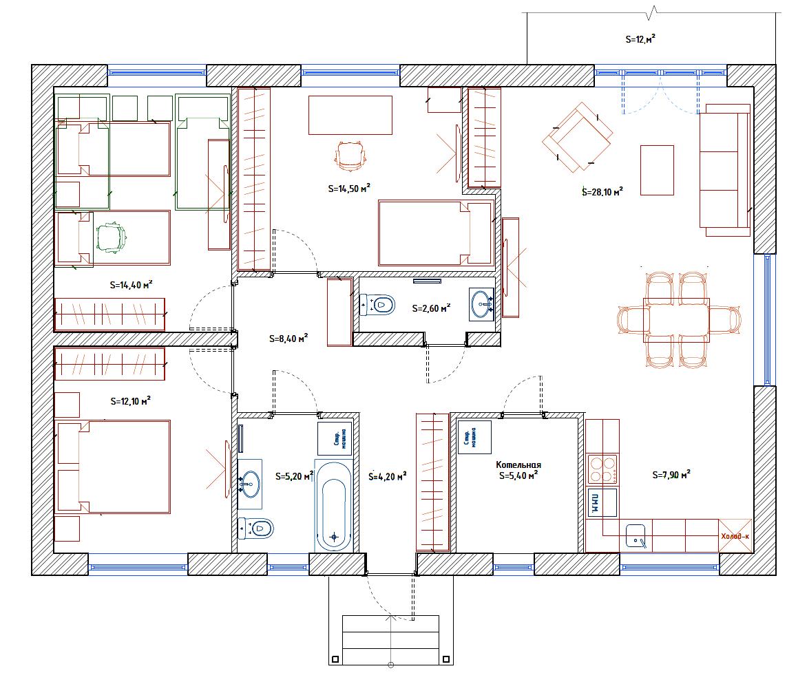 От застройщика! Новый одноэтажный коттедж с отделкой под ключ117,8 кв.м на участке 6 соток в КП «Новая Дятловка». Планировка по проекту: Просторная кухня-гостиная 36 кв.м с нишей под встроенный шкаф, с окнами на три стороны света и панорамной дверью на крытую террасу 12 кв.м; 3 изолированные комнаты 12,1/14,4/14,5 кв.м, ванная комната, гостевой с/у, бойлерная, прихожая. Высокие потолки - 2,9 метра. Под кровлей можно оборудовать дополнительное помещение площадью от 18 до 30 кв.м с высотой до 1,8 м. Отделка под ключ: Стены: обои/керамическая плитка. Полы: керамогранит/кварцвинил. Потолки: натяжные с установкой точечных светильников. Установлено: межкомнатные двери, сантехника. Коммуникации в доме: Электричество, автономная канализация - биостанция Тапас, вода – индивидуальная скважина, отопление от котла. Котельная оборудованапод ключвыполнена разводка всех коммуникаций. Магистральный газ по границе участка (врезка выполнена). Земельный участок: 6 соток, ровный. Назначение - ИЖС, прописка – д. Дятловка, г.о. Балашиха Вы без проблем сможете прикрепиться к садику, школе, поликлинике. Коттедж построен из высококачественных материалов с соблюдением всех технологий: - Фундамент: Свайный с ростверком (монолитный с армированием) с заглублением 3 м; - Стены: Газобетонный блок Бонолит, толщина внешних стен 400мм; - Фасад: Штукатурка, покраска, Цоколь утеплен и облицован термопанелями, выполнена отмостка; - Кровля: Четырехскатная из метало-черепицы с установкой снегозадержателей и водосточной системы; - Окна: Металло-пластиковые двухкамерные стеклопакеты с поворотно-откидным механизмом; - Крыльцо с навесом. - Терраса с навесом; - Входная металлическая утепленная дверь; - Забор - металлический штакетник высотой 2м. О поселке: Асфальтированные дороги. Общее освещение. Закрытая территория. В поселке оборудована детско-спортивная площадка с воркаутом и зоной отдыха, площадкой для малышей. Чистый и свежий воздух и при этом расстояние до города- всего 3 км от мкр. Железнодорожный и 17 км от МКАД. Ближайшие станции метро: Новокосино, Железнодорожная, Некрасовка. Рядом М12; МЦД4. Инфраструктура: Все поблизости: Детский сад, школа, амбулатория, парк, банк, почта, спортивный комплекс с плавательным бассейном в Агрогородке - 10 мин на авто/автобусе. В д.Дятловка расположена остановка школьного автобуса, где утром забирает, а после уроков привозит ребят школьный автобус. В доступности Вкус Вилл, Пятерочка, пункты Яндекс/Озон/Валдбериз, аптека и тд. ТЦ, рестораны, кафе, магазины и другая социально-бытовая инфраструктура расположена в г.Железнодорожном - 15 минут на авто. Как добраться: От КП до остановки автобуса 10 минут пешком. Автобус №26 идет до ж/д станции "Черное"- 10 минут, до ж/д станции "Железнодорожная" - 20 минут. Продажа от застройщика. Семейная и it-ипотека от 6%. Вся стоимость в договор. Сопровождение сделки - бесплатно. Индивидуальная рассрочка до 12 месяцев. Добро пожаловать! [#8146270#]