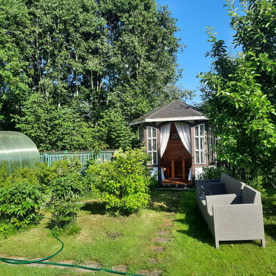 Арт. 128760346 Предлагается к продаже замечательный участок с не менее замечательным домом в СНТ " 200-ЛЕТИЕ Кировского завода", Новая Ропша. Отличная транспортная доступность: до выезда на КАД всего 10 км, до метро проспект Ветеранов на машине 30 мин, на общественном транспорте 1,5 час с периодичностью 30 мин.Рядом расположено замечательное место отдыха для любителей рыбалки, где можно отдохнуть и вкусно пообедать всей семьей " Ропшинские пруды". Участок с ровным газоном , на участке есть все, чтобы можно было с комфортом отдохнуть от городского шума. Есть несколько кустов смородины, крыжовника, два небольших стеклянных парника, но большую часть участка занимают цветы: пионы, гортензии.В жаркие дни есть место для отдыха в замечательной беседке.Также есть замечательное строение, которое имеет широкий спектр использования. Баня , включающая парную ( печь финская), комната отдыха (все в отличном состоянии) . Хозяйственный блок.Теперь о доме: фундамент бетонный, ленточный, стены пенобетон, облицованный сайдингом, крыша металлочерепица. Есть встроенный бетонный гараж ( 17кв.м) на две машины, шикарная терраса, балкон, не большой погреб. В доме французская отопительная печь( со щитом) и канадский камин. Санузел и душевая кабина в доме.Этот участок и дом лучше увидеть, фотографии не передают того комфорта и уюта, который ощущаешь при посещении.Звоните, приходите и все увидите сами.