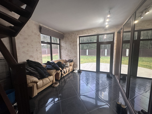 В доме : на 1 этаже просторная кухня- гостиная с панорамными окнами 42м2, коридор 6 м2, комната 19 м2 с выходом на открытую террасу перед домом, санузел с джакузи 10 м2.На втором этаже холл 31м2 и три спальни ( 12 м2, 15 м2, 15м2) и балкон, санузел 9 м2 Потолоки в доме высокие, от 3.0 до 3.5 метров на обоих этажах .Мебель и техника приобретались для себя и остаются новому владельцу.