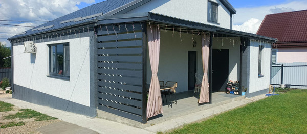 Арт. 125520894 Продается современный, уютный дом с панорамными окнами, построенный в 2024 году. Общая площадь дома составляет 175,5 кв.м., а земельный участок ИЖС — 7,5 соток.Участок полностью огорожен, установлены откатные ворота. На территории высажены плодовые деревья, декоративные кустарники и розы, а также имеется баня.Котельная расположена отдельно от дома и имеет собственный вход.На первом этаже находятся кухня-столовая-гостиная (кухонный гарнитур остается), спальня, прихожая и санузел.На втором этаже расположены холл, две просторные спальни, санузел и балкон.Полы на первом этаже (кроме спален) выполнены из керамогранита, а в спальнях — из кварцвинила. Стены отделаны декоративной штукатуркой, натяжные потолки установлены во всем доме.