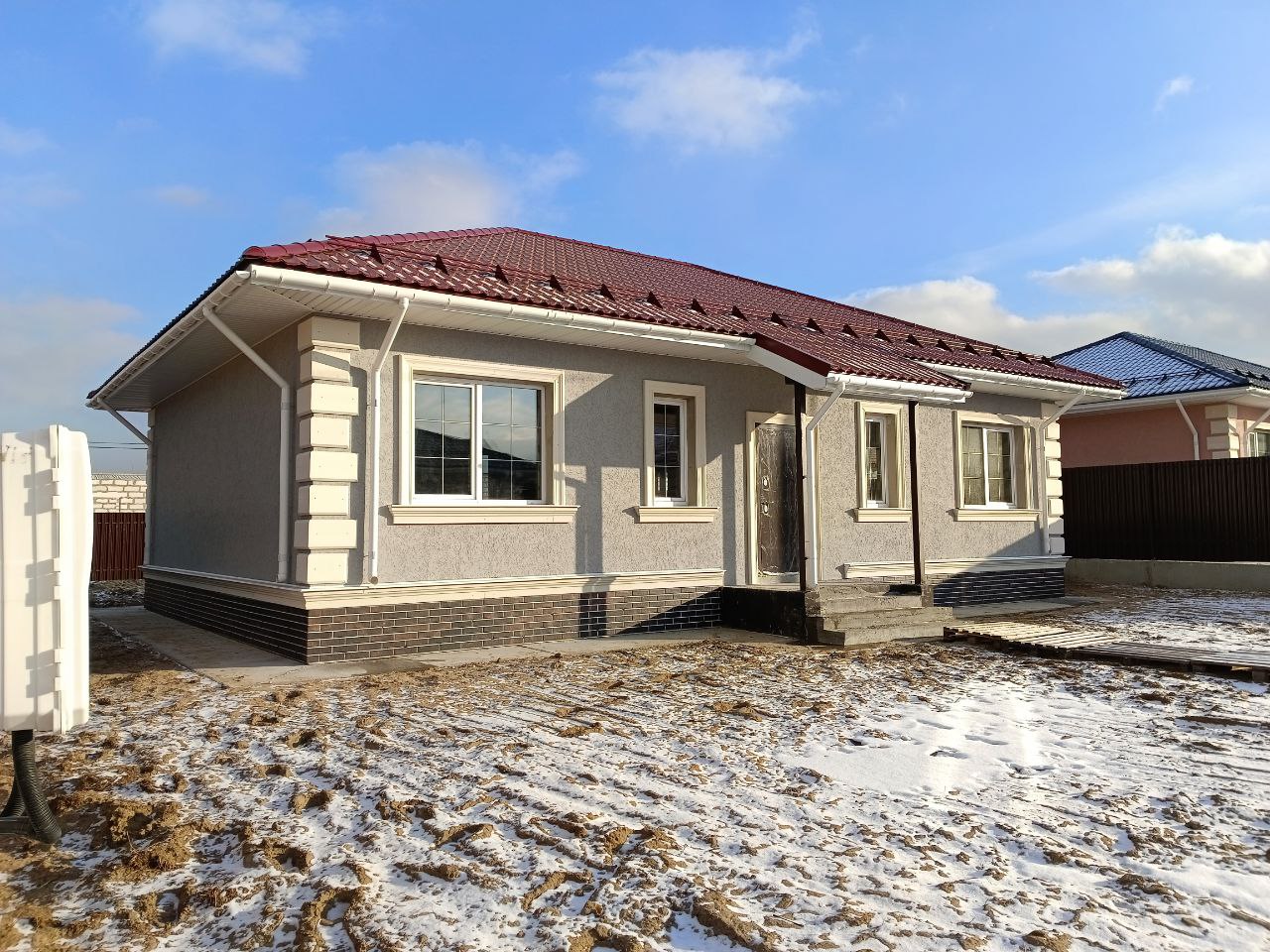 От застройщика! Новый одноэтажный коттедж 117,6 кв.м с отделкой White box на участке 6 соток в КП «Новая Дятловка». Отделка White box: В доме установлены межкомнатные стены; выполнена разводка всех коммуникаций; натяжной потолок; оборудована котельная под ключ. Планировка по проекту: 1 этаж Просторная кухня-гостиная 36 кв.м с окнами на три стороны света и панорамной дверью на крытую террасу 12 кв.м; 3 изолированные комнаты 12/14/14 кв.м, ванная комната, гостевой с/у, бойлерная, гардеробная. Высокие потолки - 3 метра. Под кровлей можно оборудовать дополнительное помещение площадью от 18 до 30 кв.м с высотой до 1,8 м. Коммуникации в доме: Электричество, магистральный газ, автономная канализация, вода – индивидуальная скважина, отопление от газового котла. Земельный участок: 6 соток. Назначение - индивидуальное жилищное строительство (ИЖС), прописка – д. Дятловка, г.о. Балашиха Вы можете прикрепиться к садику, школе, поликлинике. Коттедж построен из высококачественных материалов с соблюдением всех технологий: - Фундамент: Свайный с ростверком (монолитный с армированием) с заглублением 3 м; - Стены: Газобетонный блок Бонолит, толщина внешних стен 400мм; - Фасад: Штукатурка, покраска, Цоколь утеплен и облицован термопанелями, выполнена отмостка; - Кровля: Четырехскатная из метало-черепицы с установкой снегозадержателей и водосточной системы; - Окна: Металло-пластиковые двухкамерные стеклопакеты с поворотно-откидным механизмом; - Крыльцо с навесом. - Терраса с навесом; - Входная металлическая утепленная дверь; - Забор - металлический штакетник высотой 2м. О поселке: Асфальтированные дороги. Общее освещение. Закрытая территория. В поселке оборудована детско-спортивная площадка с воркаутом и зоной отдыха. Чистый и свежий воздух, тишина и уединение с природой и при этом оптимальное расстояние до города - всего 3 км от мкр. Железнодорожный и 17 км от МКАД. Ближайшие станции метро: Новокосино, Железнодорожная, Некрасовка. Инфраструктура: Все поблизости: Детский сад, школа, амбулатория, парк, банк, почта, спортивный комплекс с плавательным бассейном в Агрогородке - 10 мин на авто/автобусе. В д.Дятловка расположена остановка школьного автобуса, где утром забирает, а после уроков привозит ребят школьный автобус. В шаговой доступности Вкус Вилл, Пятерочка, пункты Яндекс/Озон/Валдбериз, аптека и тд. ТЦ, рестораны, кафе, магазины и другая социально-бытовая инфраструктура расположена в городе Железнодорожном - 15 минут на авто. Как добраться: От коттеджного поселка до остановки автобуса 10 минут пешком. Автобус №26 идет до ж/д станции "Черное"- 10 минут, до ж/д станции "Железнодорожная" - 20 минут. Открыт участок автомобильной трассы М12 Москва-Ногинск, легкое метро МЦД-4 (от Апрелевки до Железнодорожного). Продажа от застройщика. Семейная и IT ипотека - 6%. Вся стоимость в договор. Одобрение ипотеки и сопровождение сделки - бесплатно. Индивидуальная рассрочка до 12 месяцев. Добро пожаловать! [#7940070#]