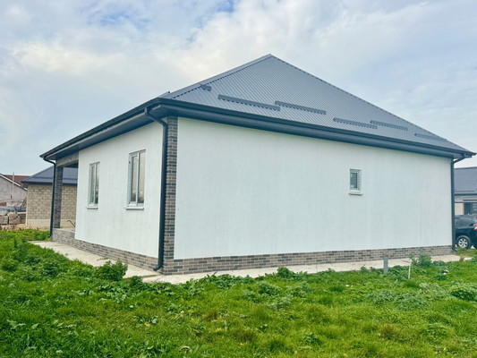 Большой ровный участок 7 соток огорожен забором. Имеет два широких фасада. В доме три просторных комнаты, коридор, котельная, совмещенный большой санузел, кухня-гостиная и терраса.