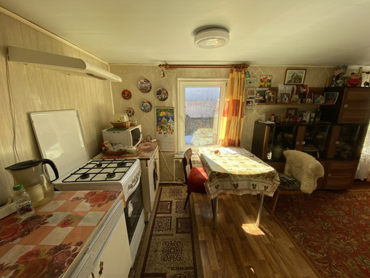 Участок - 1 534 кв.м ИЖС Площадь бревенчатого дома - 34,7 кв.м ( по факту 54 кв.м) Жилая площадь - 21,6 кв.м Кухня - 8,2 кв.м объединена с гостиной 12,5 кв.м Спальня - 9,1 кв.м Есть просторная веранда.