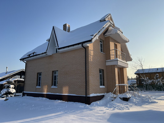 Нарядный коттедж 183 м2 построен в 2016г.Материал стен блоки Ytong. Снаружи облицован кирпичом светлого цвета.Крыша металлочерепица со снегозадержателями.Фундамент ж/б ленточный на глубину до 2,0 м. с усилением под камин. Снаружи цоколь облицован темными пластиковыми панелями. Вокруг дома отмостка, забетонированная и выложенная плиткой. Водоотведение и дренаж по участку с выводом в дренажный колодец.Окна двойной стеклопакет. На окнах установлены решетки. Внутри помещения оштукатурены, стены покрашены в спокойные светлые тона.На входе в дом крыльцо с металлическими перилами. Надежная металлическая дверь.С задней стороны дома просторная терраса с металлической дверью. На втором этаже два балкона.К дому пристроен гараж 20 м2 на 1 авто с автоматическими воротами. Из него есть вход в дом.Позади гаража котельная с отдельным выходом на участок.