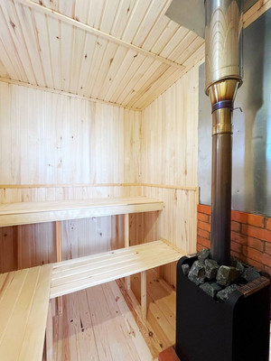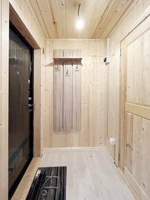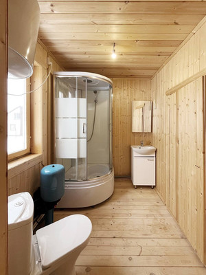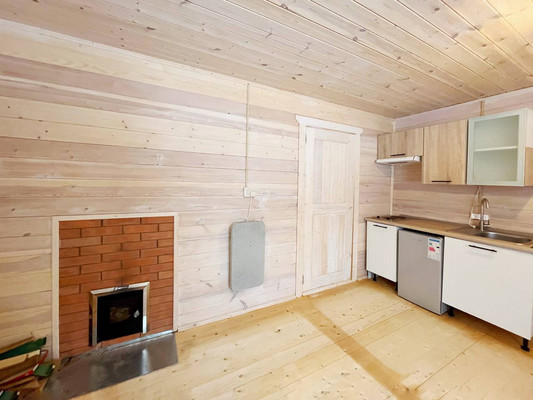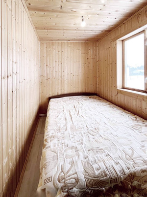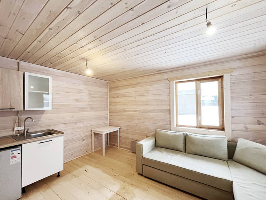 Кухня-гостиная, спальня, санузел с сауной, бойлерная, коридор. Дом каркасный. Канализация- септик, вода- скважина, отопление - печь и инфракрасное по всему дому. Есть кухонный гарнитур, плитка, холодильник, стиральная машина, душевая кабина, диван, стол, стулья, кровать, вешалка для одежды.