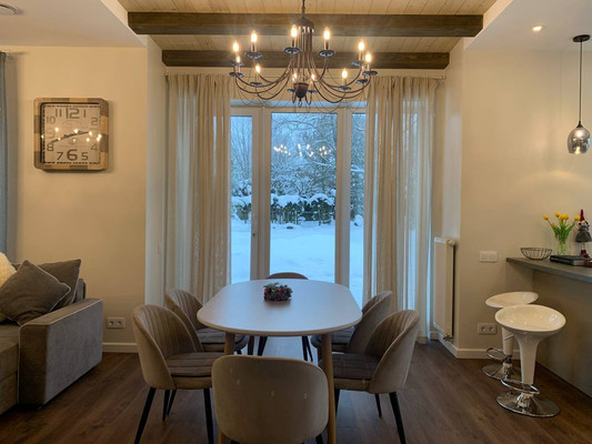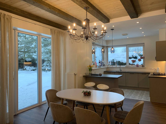 Кухня-гостиная площадью 37,5 м2, два сан узла, кладовая, постирочная. Из гостиной выход на террасу. При необходимости проект можно немного изменить.