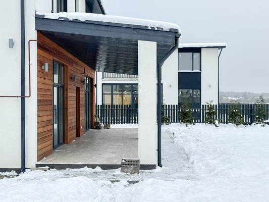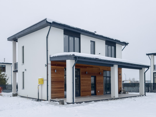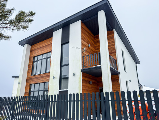 Поселок спроектирован в едином скандинавском стиле. Однородная социальная среда. Круглосуточная охрана, центральное видеонаблюдение. Въезд в поселок через шлагбаум, асфальтированная дорога до дома. Рядом населенные пункты Ольгино, Марьино, продуктовые магазины, кафе, ПВЗ Ozon.