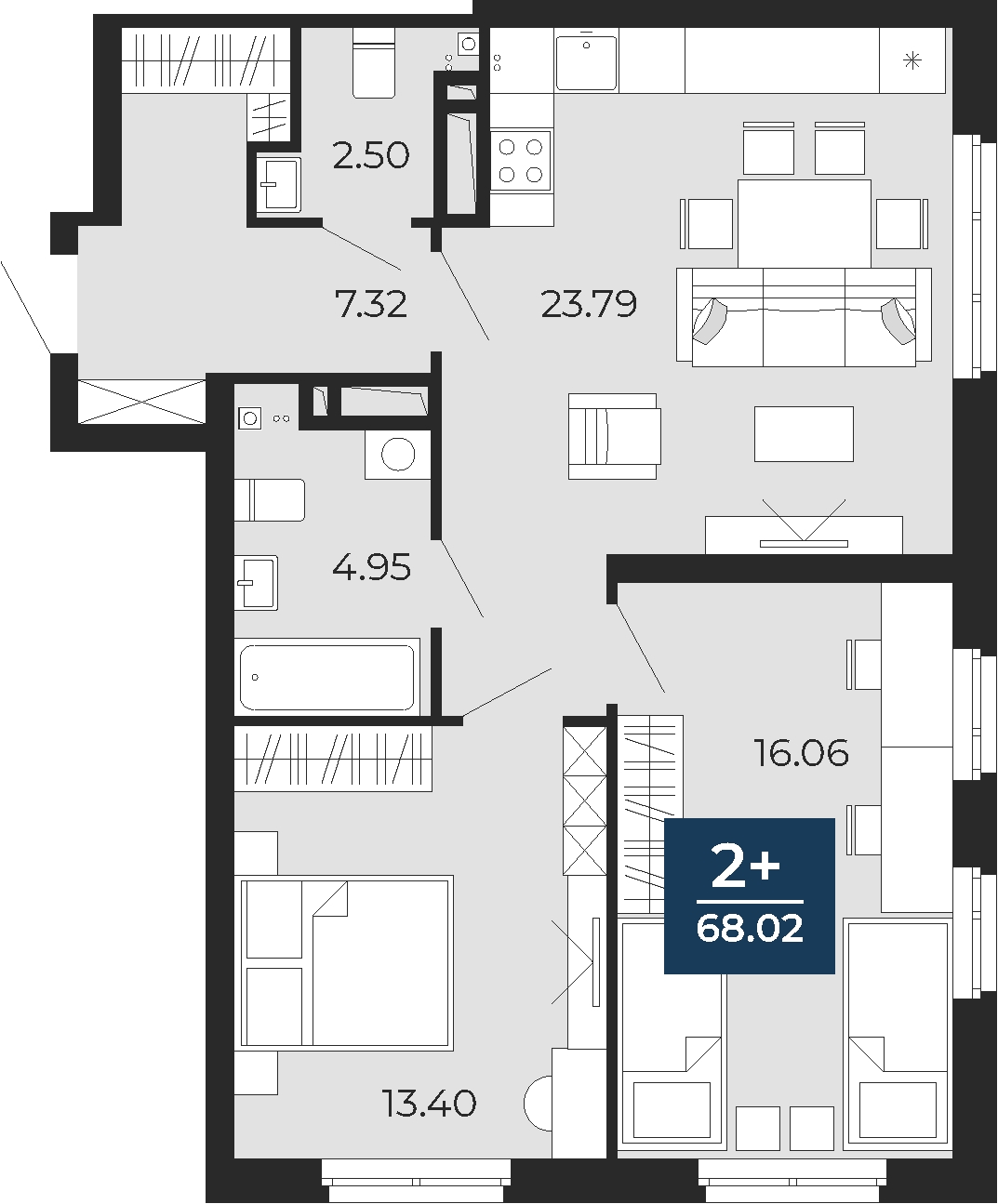 - Общая площадь 68.02 м²