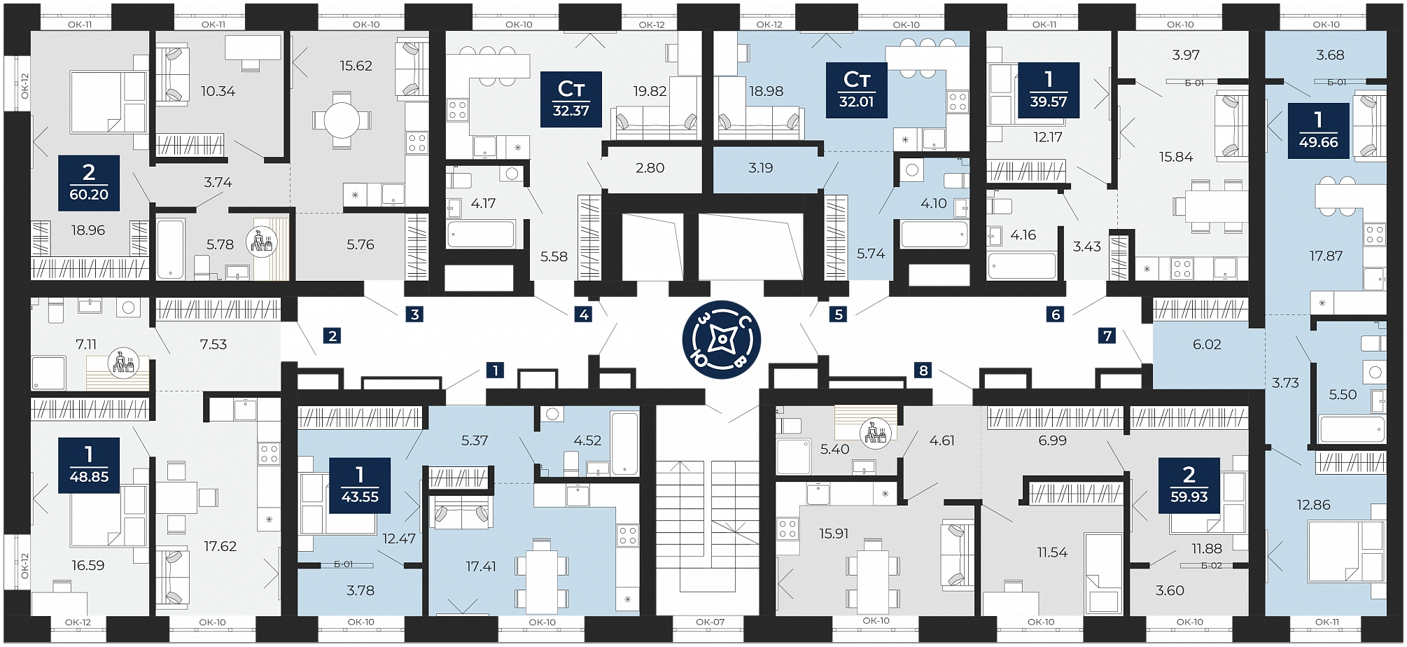 1-комн. квартира с предчистовой отделкой в ЖК "Преображенский" на 3 этаже. Общая площадь: 48.85 кв.м., жилая: 16.59 кв.м., площадь просторной кухни-столовой: 17.62 кв.м. Квартира угловая, окна oбecпeчивaют paвнoмepнoe ocвeщeниe в тeчeниe дня. В квартире один совмещенный санузел. Высота потолков 2.7 м. Дом кирпичный, многоподъездный, переменной этажности, от 8 до 12 этажей. Квартира находится в 5-й секции высотой 10 этажей в корпусе ГП-81. На этаже 8 квартир. В подъезде 1 пассажирский и 1 грузовой лифт. Начало строительства - 1 квартал 2023 года. Окончание строительства - 4 квартал 2025 года. Оформление сделки по договору долевого участия. Квартал будет расположен в микрорайоне Славянский на пересечении улиц Мира и 70-летия Октября. Престижный район, собственный парк, вся необходимая для жизни, учёбы и работы инфраструктура — новая школа с бассейном и кванториумом, новый детский сад, поликлиника, спорткомплекс, магазины и др. Чтобы в квартирах было как можно больше свободного пространства, мы предусмотрели индивидуальные кладовые на цокольном этаже. Оставляйте коляски и сезонный спортинвентарь после прогулок здесь — удобно для вас и чисто для квартиры. В подземный паркинг можно спуститься на лифте прямо с квартирной площадки. (AQID02414965)