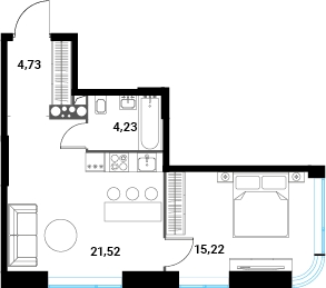 - Общая площадь 45.7 м²