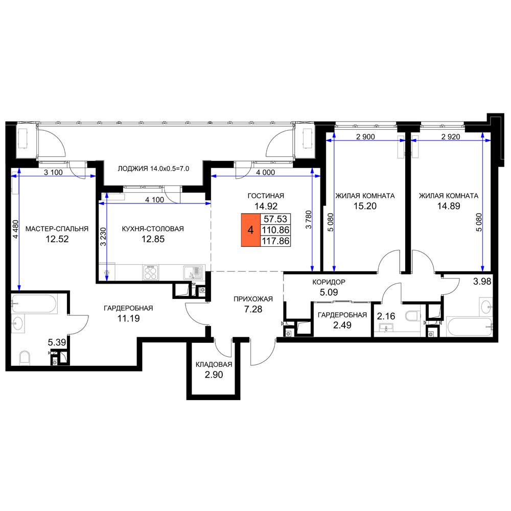 Квартира 4-комн., 120 м2, 16/16 этаж,