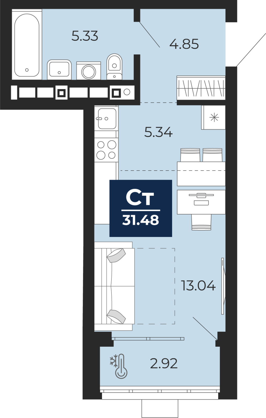Просторная 1-комн. квартира-студия с предчистовой отделкой в ЖК "Соната Парк" на 12 этаже. Общая площадь: 30.02 кв.м., площадь гостиной 18.38 кв.м., из которых 5.34 кв.м. выделено под кухонную зону. Все окна выходят на одну сторону. В квартире один балкон, один совмещенный санузел. Высота потолков 2.72 м. Дом монолитный, двухподъездный, переменной этажности, от 23 до 30 этажей. Квартира находится в 1-й секции высотой 30 этажей в корпусе 1. На этаже 10 квартир. В подъезде 2 пассажирских и 2 грузовых лифта. Окончание строительства - 4 квартал 2028 года. Оформление сделки по договору долевого участия. ЖК «Соната Парк» расположен в новом городском кластере «Аллея Романтиков» на Юго-Западе Екатеринбурга. Это район улиц Волгоградская – Советских женщин – Шаумяна – Амудсена. Аллея объединяет разные кварталы застройщиков этой территории в единое целое. Чистые линии, интеллектуальная элегантность фасадов, игра света и тени – это партитура, написанная архитектором. Благоустройство жилого комплекса – это синтез искусства и природы. Поющие музыкальные инсталляции и поэтический променад. Оркестр растений: сирень, гортензии и яблони, чья цветущая палитра сменяется в течение года. 1005 квартир: от студий 31 м² до 4-комнатных 99 м². С опциями для комфортной жизни: высокие потолки до 3 м, гардеробные даже в 1-комнатных, террасы и зимние сады. Жизнь с готовой инфраструктурой Развитая транспортная доступность и социальная среда: уже сегодня рядом с домом – детские сады, школы, парковые зоны, супермаркеты и рестораны в шаговой доступности. Технологии безопасности Для спокойствия жителей создана интеллектуальная система безопасности. Круглосуточный визуальный контроль обеспечивают профессиональная служба охраны, постоянно присутствующая на территории, и ситуационный центр. Система видеонаблюдения охватывает каждый уголок комплекса, исключая «слепые» зоны. Чёткое зонирование и навигация дополняют картину полного порядка. Дизайнерские подъезды Стилистика подъездов продолжает концепцию «Соната Парка», вдохновлённого музыкальной симфонией: сдержанный, но при этом впечатляющий дизайн соседствует с удобством и функциональностью. В подъезде вас встречает музыка, создавая особую атмосферу с первых секунд. Светлые и стильные входные группы с панорамным остеклением наполняют пространство светом, добавляя ему современной эстетики и ощущения безопасности. Аллея Романтиков Проект органично вписан в масштабный пешеходный кластер «Аллея Романтиков» — уникальное общегородское пространство, которое уже сегодня называют будущей альтернативой главным прогулочным улицам города. Это многофункциональный бульвар протяжённостью 1 километр, где всё создано для вдохновения и отдыха. Это «зелёное сердце» территории, которое объединит кварталы разных застройщиков в единую гармоничную среду. Здесь будут назначать свидания, гулять с семьёй, встречаться с друзьями и просто наслаждаться моментом. Линейка ремонтов Ремонт с капсульной меблировкой — когда всё готово к жизни. Мы соединили качественный ремонт и продуманную меблировку в одном флаконе. Словно «с иголочки», новая квартира готова и обставлена с чувством стиля и вкуса. Здесь будет всё до последней мелочи: от дивана до чайника, от освещения до текстиля. Переступите порог и моментально ощутите себя дома. Особенности: Виде