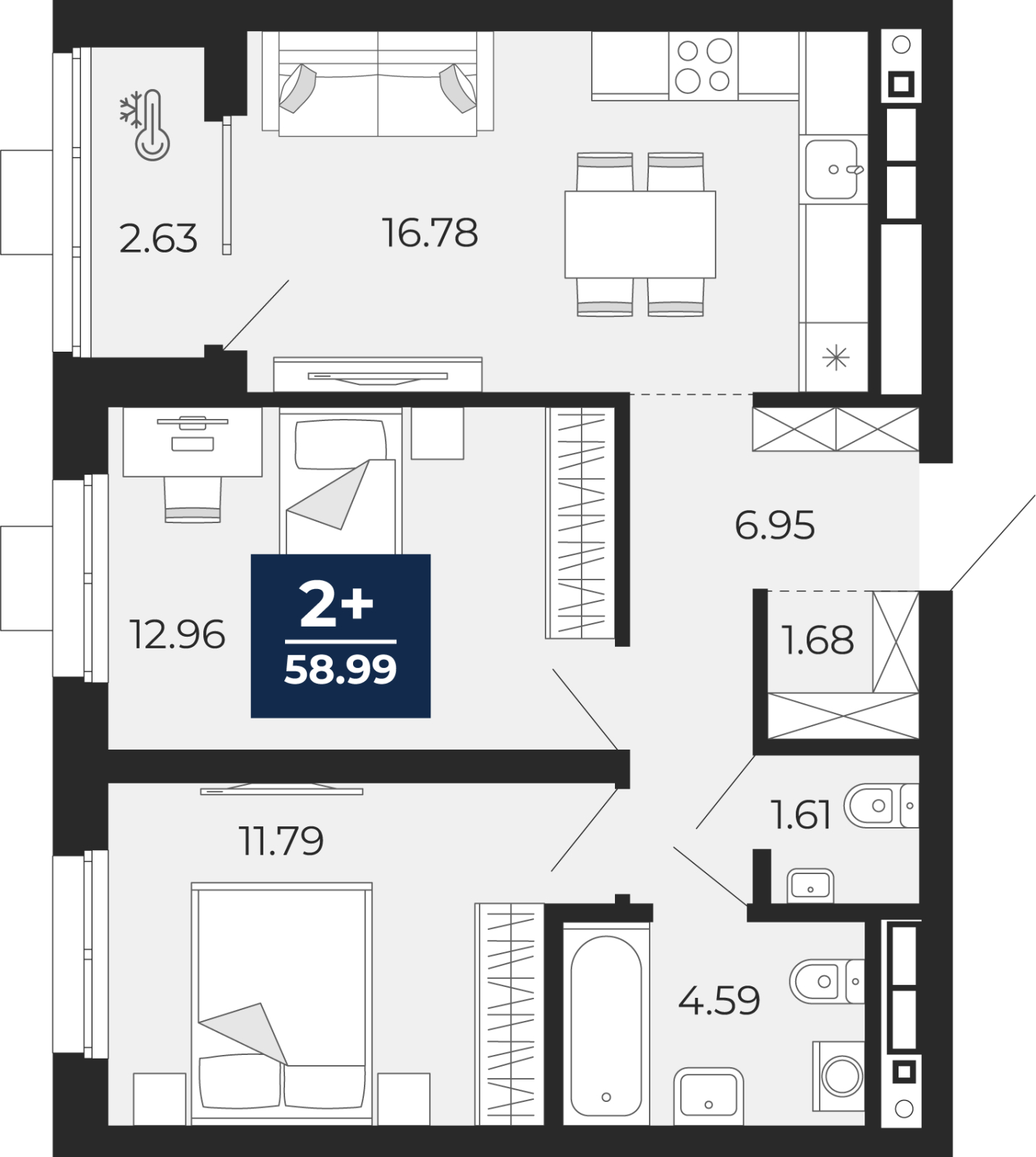 2-комн. квартира с предчистовой отделкой в ЖК "Соната Парк" на 14 этаже. Общая площадь: 57.68 кв.м., жилая: 24.75 кв.м., площадь просторной кухни-столовой: 16.78 кв.м. Комнаты изолированные, все окна выходят на одну сторону. В квартире одна лоджия, один совмещенный и один раздельный санузел. Высота потолков 2.72 м. Дом монолитный, двухподъездный, переменной этажности, от 23 до 30 этажей. Квартира находится в 1-й секции высотой 30 этажей в корпусе 1. На этаже 10 квартир. В подъезде 2 пассажирских и 2 грузовых лифта. Окончание строительства - 4 квартал 2028 года. Оформление сделки по договору долевого участия. ЖК «Соната Парк» расположен в новом городском кластере «Аллея Романтиков» на Юго-Западе Екатеринбурга. Это район улиц Волгоградская – Советских женщин – Шаумяна – Амудсена. Аллея объединяет разные кварталы застройщиков этой территории в единое целое. Чистые линии, интеллектуальная элегантность фасадов, игра света и тени – это партитура, написанная архитектором. Благоустройство жилого комплекса – это синтез искусства и природы. Поющие музыкальные инсталляции и поэтический променад. Оркестр растений: сирень, гортензии и яблони, чья цветущая палитра сменяется в течение года. 1005 квартир: от студий 31 м² до 4-комнатных 99 м². С опциями для комфортной жизни: высокие потолки до 3 м, гардеробные даже в 1-комнатных, террасы и зимние сады. Жизнь с готовой инфраструктурой Развитая транспортная доступность и социальная среда: уже сегодня рядом с домом – детские сады, школы, парковые зоны, супермаркеты и рестораны в шаговой доступности. Технологии безопасности Для спокойствия жителей создана интеллектуальная система безопасности. Круглосуточный визуальный контроль обеспечивают профессиональная служба охраны, постоянно присутствующая на территории, и ситуационный центр. Система видеонаблюдения охватывает каждый уголок комплекса, исключая «слепые» зоны. Чёткое зонирование и навигация дополняют картину полного порядка. Дизайнерские подъезды Стилистика подъездов продолжает концепцию «Соната Парка», вдохновлённого музыкальной симфонией: сдержанный, но при этом впечатляющий дизайн соседствует с удобством и функциональностью. В подъезде вас встречает музыка, создавая особую атмосферу с первых секунд. Светлые и стильные входные группы с панорамным остеклением наполняют пространство светом, добавляя ему современной эстетики и ощущения безопасности. Аллея Романтиков Проект органично вписан в масштабный пешеходный кластер «Аллея Романтиков» — уникальное общегородское пространство, которое уже сегодня называют будущей альтернативой главным прогулочным улицам города. Это многофункциональный бульвар протяжённостью 1 километр, где всё создано для вдохновения и отдыха. Это «зелёное сердце» территории, которое объединит кварталы разных застройщиков в единую гармоничную среду. Здесь будут назначать свидания, гулять с семьёй, встречаться с друзьями и просто наслаждаться моментом. Линейка ремонтов Ремонт с капсульной меблировкой — когда всё готово к жизни. Мы соединили качественный ремонт и продуманную меблировку в одном флаконе. Словно «с иголочки», новая квартира готова и обставлена с чувством стиля и вкуса. Здесь будет всё до последней мелочи: от дивана до чайника, от освещения до текстиля. Переступите порог и моментально ощутите себя дома. Особенно