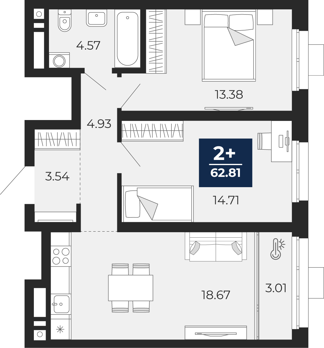 Двухкомнатная квартира с предчистовой отделкой в ЖК "Соната Парк" на 2 этаже. Общая площадь: 61.31 кв.м., жилая: 28.09 кв.м., площадь просторной кухни-столовой: 18.67 кв.м. Комнаты изолированные, все окна выходят на одну сторону. В квартире одна лоджия, один совмещенный санузел. Высота потолков 2.72 м. Дом монолитный, трехподъездный, переменной этажности, от 10 до 24 этажей. Квартира находится во 2-й секции высотой 24 этажа в корпусе 2. На этаже 10 квартир. В подъезде 2 пассажирских и 1 грузовой лифт. Окончание строительства - 4 квартал 2028 года. Оформление сделки по договору долевого участия. ЖК «Соната Парк» расположен в новом городском кластере «Аллея Романтиков» на Юго-Западе Екатеринбурга. Это район улиц Волгоградская – Советских женщин – Шаумяна – Амудсена. Аллея объединяет разные кварталы застройщиков этой территории в единое целое. Чистые линии, интеллектуальная элегантность фасадов, игра света и тени – это партитура, написанная архитектором. Благоустройство жилого комплекса – это синтез искусства и природы. Поющие музыкальные инсталляции и поэтический променад. Оркестр растений: сирень, гортензии и яблони, чья цветущая палитра сменяется в течение года. 1005 квартир: от студий 31 м² до 4-комнатных 99 м². С опциями для комфортной жизни: высокие потолки до 3 м, гардеробные даже в 1-комнатных, террасы и зимние сады. Жизнь с готовой инфраструктурой Развитая транспортная доступность и социальная среда: уже сегодня рядом с домом – детские сады, школы, парковые зоны, супермаркеты и рестораны в шаговой доступности. Технологии безопасности Для спокойствия жителей создана интеллектуальная система безопасности. Круглосуточный визуальный контроль обеспечивают профессиональная служба охраны, постоянно присутствующая на территории, и ситуационный центр. Система видеонаблюдения охватывает каждый уголок комплекса, исключая «слепые» зоны. Чёткое зонирование и навигация дополняют картину полного порядка. Дизайнерские подъезды Стилистика подъездов продолжает концепцию «Соната Парка», вдохновлённого музыкальной симфонией: сдержанный, но при этом впечатляющий дизайн соседствует с удобством и функциональностью. В подъезде вас встречает музыка, создавая особую атмосферу с первых секунд. Светлые и стильные входные группы с панорамным остеклением наполняют пространство светом, добавляя ему современной эстетики и ощущения безопасности. Аллея Романтиков Проект органично вписан в масштабный пешеходный кластер «Аллея Романтиков» — уникальное общегородское пространство, которое уже сегодня называют будущей альтернативой главным прогулочным улицам города. Это многофункциональный бульвар протяжённостью 1 километр, где всё создано для вдохновения и отдыха. Это «зелёное сердце» территории, которое объединит кварталы разных застройщиков в единую гармоничную среду. Здесь будут назначать свидания, гулять с семьёй, встречаться с друзьями и просто наслаждаться моментом. Линейка ремонтов Ремонт с капсульной меблировкой — когда всё готово к жизни. Мы соединили качественный ремонт и продуманную меблировку в одном флаконе. Словно «с иголочки», новая квартира готова и обставлена с чувством стиля и вкуса. Здесь будет всё до последней мелочи: от дивана до чайника, от освещения до текстиля. Переступите порог и моментально ощутите себя дома. Особенности: Видеон