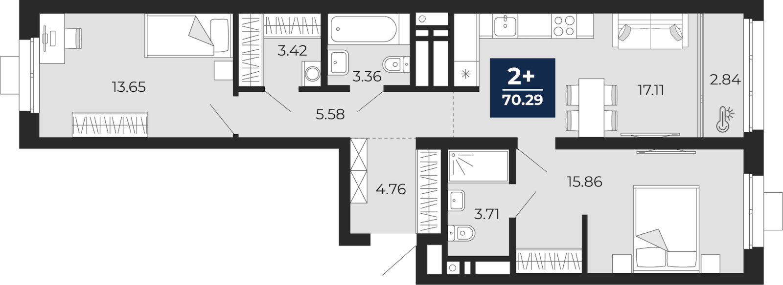 Двухкомнатная квартира с предчистовой отделкой в ЖК "Соната Парк" на 2 этаже. Общая площадь: 68.87 кв.м., жилая: 29.51 кв.м., площадь просторной кухни-столовой: 17.11 кв.м. Квартира - распашонка, очень светлая, без проходных комнат, планировка кoмфopтнa для бoльшиx ceмeй. В квартире одна лоджия, два совмещенных санузла. Высота потолков 2.72 м. Дом монолитный, трехподъездный, переменной этажности, от 10 до 24 этажей. Квартира находится во 2-й секции высотой 24 этажа в корпусе 2. На этаже 10 квартир. В подъезде 2 пассажирских и 1 грузовой лифт. Окончание строительства - 4 квартал 2028 года. Оформление сделки по договору долевого участия. ЖК «Соната Парк» расположен в новом городском кластере «Аллея Романтиков» на Юго-Западе Екатеринбурга. Это район улиц Волгоградская – Советских женщин – Шаумяна – Амудсена. Аллея объединяет разные кварталы застройщиков этой территории в единое целое. Чистые линии, интеллектуальная элегантность фасадов, игра света и тени – это партитура, написанная архитектором. Благоустройство жилого комплекса – это синтез искусства и природы. Поющие музыкальные инсталляции и поэтический променад. Оркестр растений: сирень, гортензии и яблони, чья цветущая палитра сменяется в течение года. 1005 квартир: от студий 31 м² до 4-комнатных 99 м². С опциями для комфортной жизни: высокие потолки до 3 м, гардеробные даже в 1-комнатных, террасы и зимние сады. Жизнь с готовой инфраструктурой Развитая транспортная доступность и социальная среда: уже сегодня рядом с домом – детские сады, школы, парковые зоны, супермаркеты и рестораны в шаговой доступности. Технологии безопасности Для спокойствия жителей создана интеллектуальная система безопасности. Круглосуточный визуальный контроль обеспечивают профессиональная служба охраны, постоянно присутствующая на территории, и ситуационный центр. Система видеонаблюдения охватывает каждый уголок комплекса, исключая «слепые» зоны. Чёткое зонирование и навигация дополняют картину полного порядка. Дизайнерские подъезды Стилистика подъездов продолжает концепцию «Соната Парка», вдохновлённого музыкальной симфонией: сдержанный, но при этом впечатляющий дизайн соседствует с удобством и функциональностью. В подъезде вас встречает музыка, создавая особую атмосферу с первых секунд. Светлые и стильные входные группы с панорамным остеклением наполняют пространство светом, добавляя ему современной эстетики и ощущения безопасности. Аллея Романтиков Проект органично вписан в масштабный пешеходный кластер «Аллея Романтиков» — уникальное общегородское пространство, которое уже сегодня называют будущей альтернативой главным прогулочным улицам города. Это многофункциональный бульвар протяжённостью 1 километр, где всё создано для вдохновения и отдыха. Это «зелёное сердце» территории, которое объединит кварталы разных застройщиков в единую гармоничную среду. Здесь будут назначать свидания, гулять с семьёй, встречаться с друзьями и просто наслаждаться моментом. Линейка ремонтов Ремонт с капсульной меблировкой — когда всё готово к жизни. Мы соединили качественный ремонт и продуманную меблировку в одном флаконе. Словно «с иголочки», новая квартира готова и обставлена с чувством стиля и вкуса. Здесь будет всё до последней мелочи: от дивана до чайника, от освещения до текстиля. Переступите порог и моментально ощ