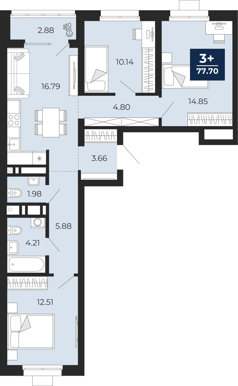 Продается 3-комн. квартира с предчистовой отделкой в ЖК "Соната Парк" на 2 этаже. Общая площадь: 76.26 кв.м., жилая: 37.5 кв.м., площадь просторной кухни-столовой: 16.79 кв.м. Квартира - распашонка, без проходных комнат, окна выходят на paзные стороны дома. В квартире одна лоджия, один совмещенный и один раздельный санузел. Высота потолков 2.72 м. Дом монолитный, трехподъездный, переменной этажности, от 10 до 24 этажей. Квартира находится в 1-й секции высотой 10 этажей в корпусе 2. На этаже 5 квартир. В подъезде 1 пассажирский и 1 грузовой лифт. Окончание строительства - 4 квартал 2028 года. Оформление сделки по договору долевого участия. ЖК «Соната Парк» расположен в новом городском кластере «Аллея Романтиков» на Юго-Западе Екатеринбурга. Это район улиц Волгоградская – Советских женщин – Шаумяна – Амудсена. Аллея объединяет разные кварталы застройщиков этой территории в единое целое. Чистые линии, интеллектуальная элегантность фасадов, игра света и тени – это партитура, написанная архитектором. Благоустройство жилого комплекса – это синтез искусства и природы. Поющие музыкальные инсталляции и поэтический променад. Оркестр растений: сирень, гортензии и яблони, чья цветущая палитра сменяется в течение года. 1005 квартир: от студий 31 м² до 4-комнатных 99 м². С опциями для комфортной жизни: высокие потолки до 3 м, гардеробные даже в 1-комнатных, террасы и зимние сады. Жизнь с готовой инфраструктурой Развитая транспортная доступность и социальная среда: уже сегодня рядом с домом – детские сады, школы, парковые зоны, супермаркеты и рестораны в шаговой доступности. Технологии безопасности Для спокойствия жителей создана интеллектуальная система безопасности. Круглосуточный визуальный контроль обеспечивают профессиональная служба охраны, постоянно присутствующая на территории, и ситуационный центр. Система видеонаблюдения охватывает каждый уголок комплекса, исключая «слепые» зоны. Чёткое зонирование и навигация дополняют картину полного порядка. Дизайнерские подъезды Стилистика подъездов продолжает концепцию «Соната Парка», вдохновлённого музыкальной симфонией: сдержанный, но при этом впечатляющий дизайн соседствует с удобством и функциональностью. В подъезде вас встречает музыка, создавая особую атмосферу с первых секунд. Светлые и стильные входные группы с панорамным остеклением наполняют пространство светом, добавляя ему современной эстетики и ощущения безопасности. Аллея Романтиков Проект органично вписан в масштабный пешеходный кластер «Аллея Романтиков» — уникальное общегородское пространство, которое уже сегодня называют будущей альтернативой главным прогулочным улицам города. Это многофункциональный бульвар протяжённостью 1 километр, где всё создано для вдохновения и отдыха. Это «зелёное сердце» территории, которое объединит кварталы разных застройщиков в единую гармоничную среду. Здесь будут назначать свидания, гулять с семьёй, встречаться с друзьями и просто наслаждаться моментом. Линейка ремонтов Ремонт с капсульной меблировкой — когда всё готово к жизни. Мы соединили качественный ремонт и продуманную меблировку в одном флаконе. Словно «с иголочки», новая квартира готова и обставлена с чувством стиля и вкуса. Здесь будет всё до последней мелочи: от дивана до чайника, от освещения до текстиля. Переступите порог и моментал