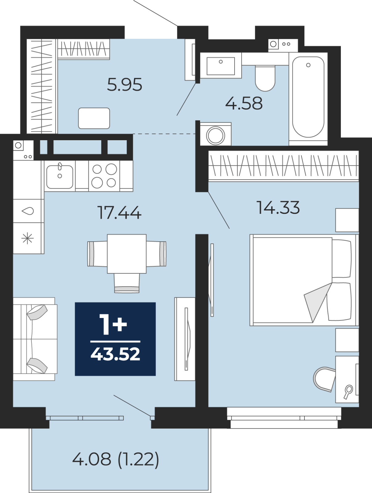 Квартира 1-комн., 44 м2, 13/21 этаж,