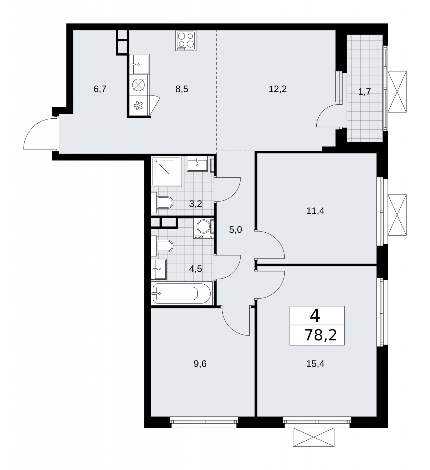 - Общая площадь 78.2 м²
