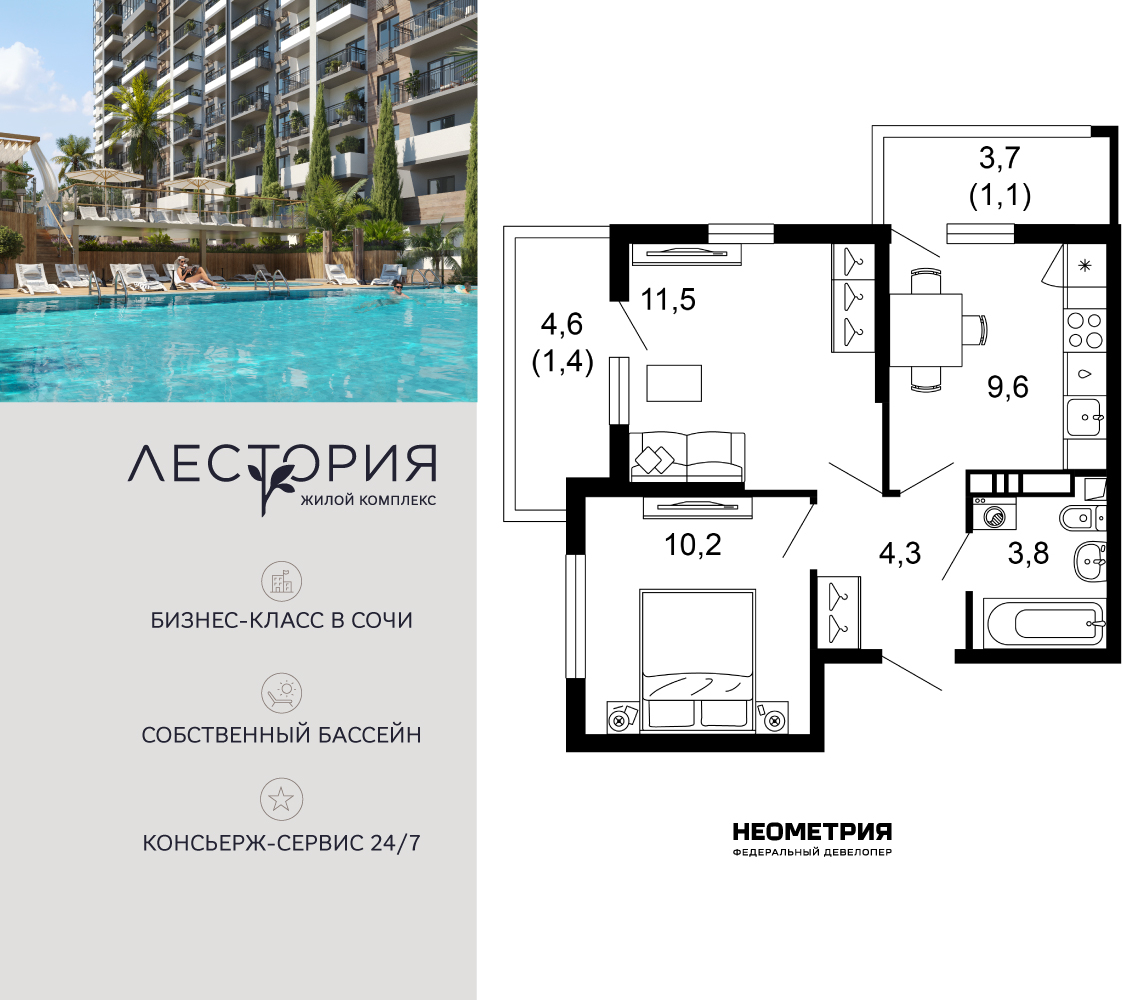 Продается квартира в жилом комплексе бизнес-класса «Лестория». В составе ЖК предусмотрена собственная аквазона площадью 473 квадратных метра с двумя подогреваемыми бассейнами, что соответствуют стандартам бизнес-класса. Аквазона объединяет взрослый и детский бассейны. В welcome-zone к услугам посетителей шезлонги и все необходимые принадлежности. Раздевалки с душевыми комнатами, инфракрасная сауна — здесь все предусмотрено для комфортного отдыха и полного расслабления. Для водного комплекса продуман отдельный вход, оборудованный системой контроля и управления доступом (СКУД). Аквазона – только часть уникальной инфраструктуры «Лестории», которая включает в себя также благоустроенную территорию с пятьюдесятью функциональными зонами для прогулок, отдыха и занятий спортом, видовые террасы на крышах для отдыха, работы и встреч с друзьями, а также пространство набережной Кудепсты с шезлонгами и перголами. Жилой комплекс «Лестория» состоит из шести домов высотностью от 15 до 17 этажей, окружённых зеленым массивом национального парка. На придомовой территории для жителей предусмотрены закрытые дворы с круглосуточным видеонаблюдением, активити-центр для детей и подростков, тихие зоны для отдыха и медитации. На крышах домов будут созданы зеленые террасы для наслаждения прекрасными видами на море и горы. В проекте предусмотрены разные варианты отделки квартир под потребности покупателей. Тем, кто хочет воплотить в жизнь собственные интерьерные задумки, подойдут квартиры без ремонта. Для комфортной жизни и отдыха в комплексе будет работать круглосуточный консьерж-сервис уровня 5*, который с легкостью закроет все ежедневные потребности: от заказа продуктов и встречи гостей в аэропорту до выгула и дрессировки питомца. К услугам жителей ЖК «Лестория» — собственная управляющая компания, для инвесторов предоставляются услуги доверительного управления. (AQID02539316)