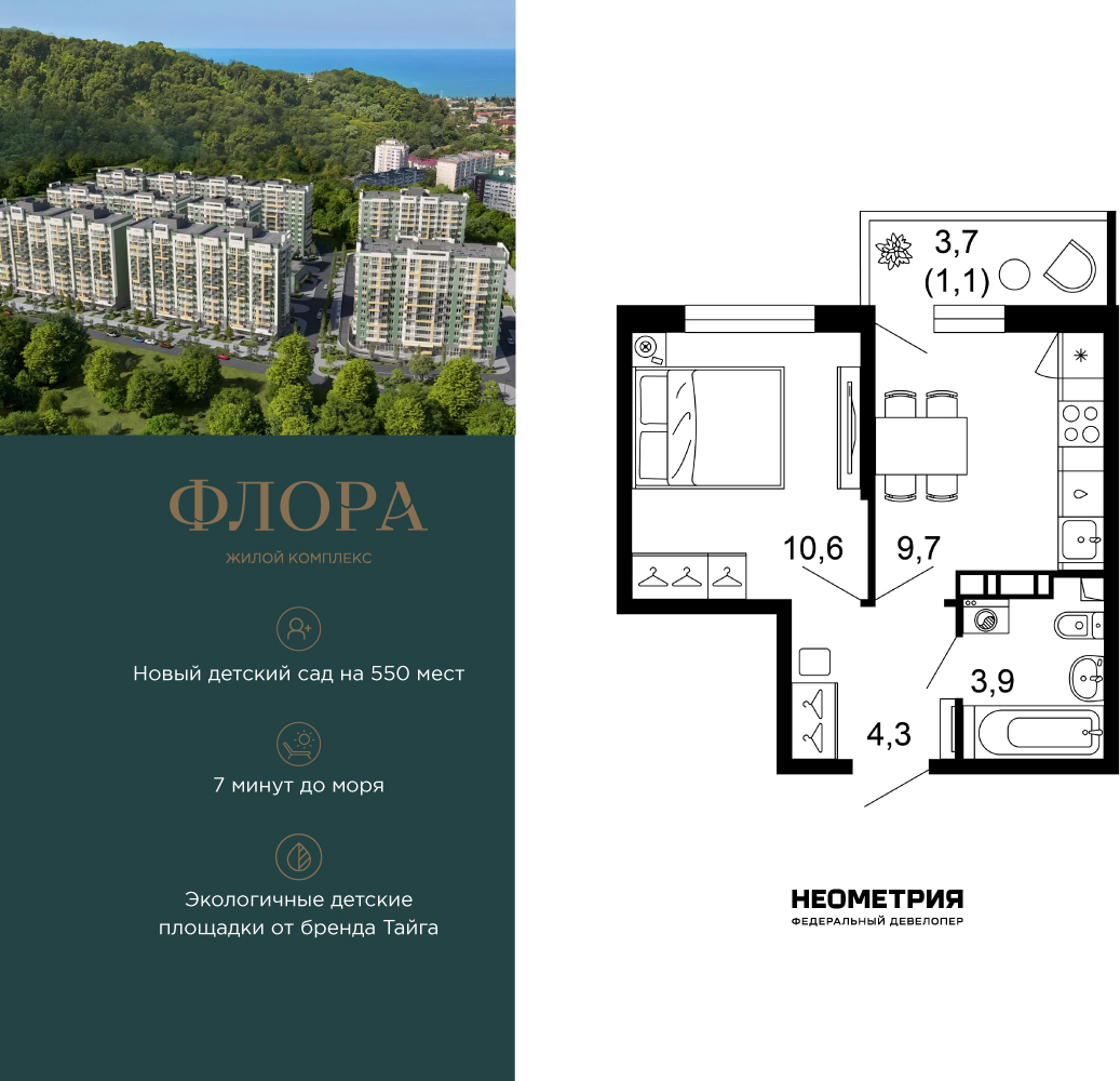 Продается квартира в ЖК «Флора» от федерального девелопера «Неометрия». Это жилой комплекс комфорт-класса в самом зеленом районе Сочи. При проектировании постарались максимально сохранить окружающую флору и фауну. Теплое море, горы, целебные источники, река, близость заповедника – все это уже рядом с вами. Жилой комплекс «Флора» – это: • 4,5 Га благоустроенной территории от дизайн-бюро Cora * 7 минут до моря на машине • Современные экологичные детские площадки от бренда «Тайга» • Яркие аллеи с цветниками и кустарниками для прогулок и утренних пробежек • Благоустроенная набережная с шезлонгами и перголами • Спортивные зоны для любителей пляжного волейбола, бадминтона и йоги - лапомоечные и колясочные в каждом подъезде - подземный паркинг на 429 мест Собственная управляющая компания с функцией «доверительного управления» Кудепста – это прекрасный зеленый оазис, который расположился между историческим центром Сочи и Адлером. Благодаря выгодному местоположению ЖК «Флора» между курортным Адлером и центром Сочи до самых популярных социальных, культурных и развлекательных объектов города можно добраться за считанные минуты: Олимпийский парк. Красная Поляна, аэропорт, жд-вокзал. Кроме того, в шаговой доступности расположена вся необходимая социальная инфраструктура, что удобно для жизни всех членов семьи: • 2 школы; • 3 детских сада; • 3 поликлиники; • 2 фитнес-центра; • 3 магазина и гипермаркета; • спортивная школа • 2 остановки общественного транспорта. На первых этажах комплекса расположены коммерческие помещения – пункты выдачи маркетплейсов, кофейни, магазины. В жилом комплексе соблюден принцип сбалансированных и эргономичных планировочных решений: от компактных студий до просторных семейных квартир. В каждой квартире есть балкон, и установлены увеличенные оконные рамы. На 12 этаже повышенной комфортности открываются потрясающие виды на море и национальный парк благодаря панорамному остеклению лоджий. Квартиру можно купить с черновой отделкой или с готовым ремонтом «Прайм», а также с сертификатом на покупку мебели. Приобрести квартиру можно за наличную оплату, в ипотеку, с привлечением средства маткапитала. (AQID02539423)