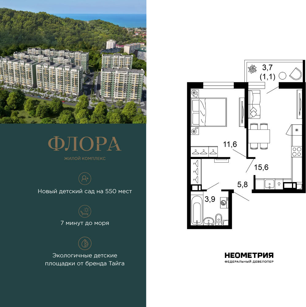 Продается квартира в ЖК «Флора» от федерального девелопера «Неометрия». Это жилой комплекс комфорт-класса в самом зеленом районе Сочи. При проектировании постарались максимально сохранить окружающую флору и фауну. Теплое море, горы, целебные источники, река, близость заповедника – все это уже рядом с вами. Жилой комплекс «Флора» – это: • 4,5 Га благоустроенной территории от дизайн-бюро Cora * 7 минут до моря на машине • Современные экологичные детские площадки от бренда «Тайга» • Яркие аллеи с цветниками и кустарниками для прогулок и утренних пробежек • Благоустроенная набережная с шезлонгами и перголами • Спортивные зоны для любителей пляжного волейбола, бадминтона и йоги - лапомоечные и колясочные в каждом подъезде - подземный паркинг на 429 мест Собственная управляющая компания с функцией «доверительного управления» Кудепста – это прекрасный зеленый оазис, который расположился между историческим центром Сочи и Адлером. Благодаря выгодному местоположению ЖК «Флора» между курортным Адлером и центром Сочи до самых популярных социальных, культурных и развлекательных объектов города можно добраться за считанные минуты: Олимпийский парк. Красная Поляна, аэропорт, жд-вокзал. Кроме того, в шаговой доступности расположена вся необходимая социальная инфраструктура, что удобно для жизни всех членов семьи: • 2 школы; • 3 детских сада; • 3 поликлиники; • 2 фитнес-центра; • 3 магазина и гипермаркета; • спортивная школа • 2 остановки общественного транспорта. На первых этажах комплекса расположены коммерческие помещения – пункты выдачи маркетплейсов, кофейни, магазины. В жилом комплексе соблюден принцип сбалансированных и эргономичных планировочных решений: от компактных студий до просторных семейных квартир. В каждой квартире есть балкон, и установлены увеличенные оконные рамы. На 12 этаже повышенной комфортности открываются потрясающие виды на море и национальный парк благодаря панорамному остеклению лоджий. Квартиру можно купить с черновой отделкой или с готовым ремонтом «Прайм», а также с сертификатом на покупку мебели. Приобрести квартиру можно за наличную оплату, в ипотеку, с привлечением средства маткапитала. (AQID02539527)