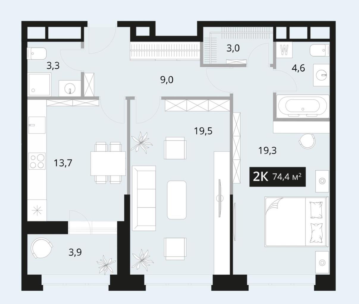 - Общая площадь 72.4 м²