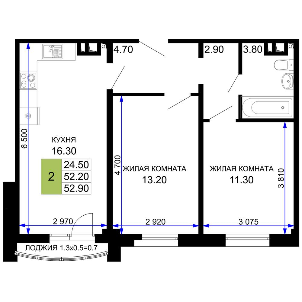 - Жилая площадь 24.5 м²