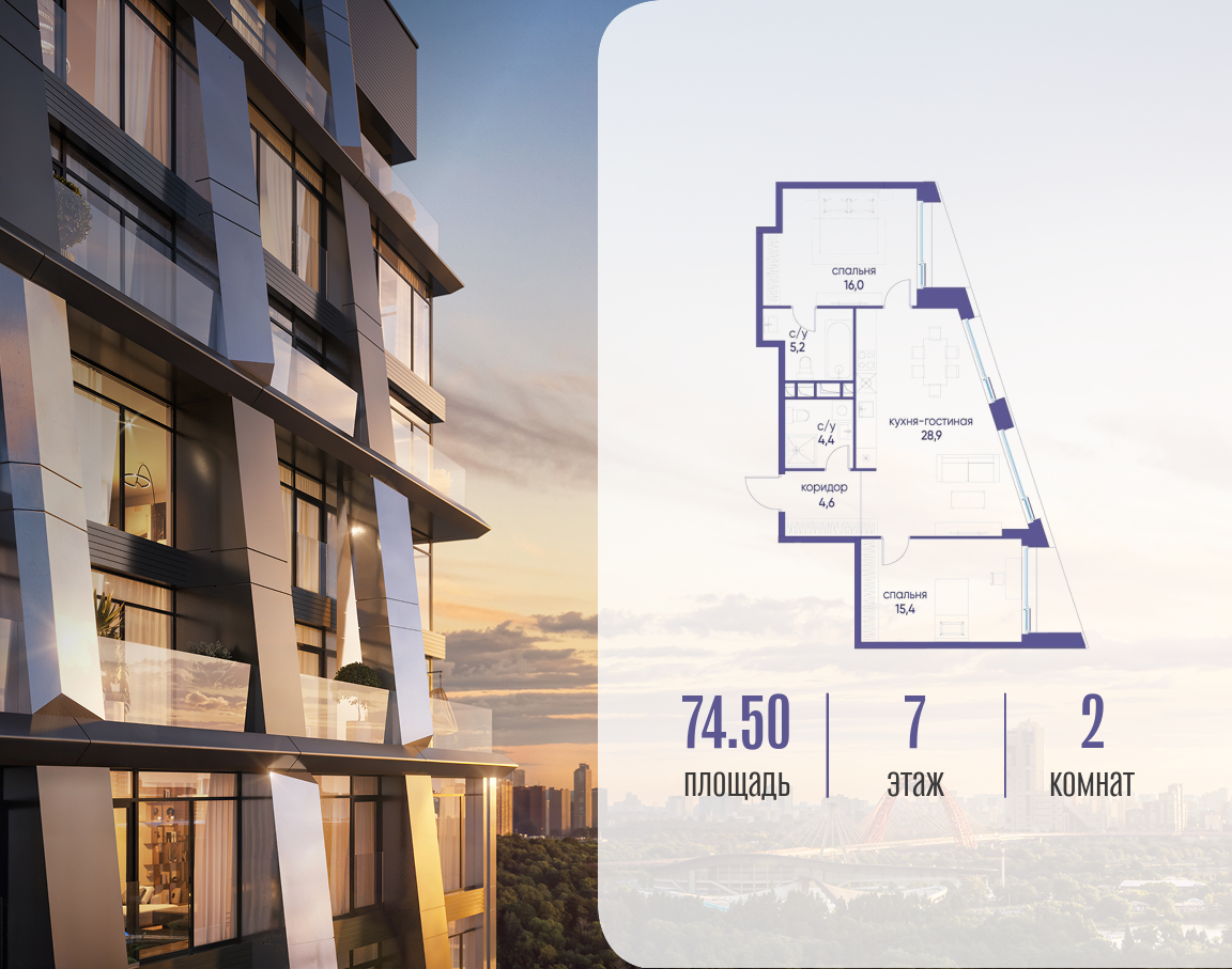 Продаётся двухкомнатная квартира от застройщика: общая площадь 74.52 м², жилая 31.40 м², кухня 28.90 м², 7, жилой квартал «Остров 12», корпус 1 (12.1 квартал) (секция 2). срок сдачи: 4-кв. 2025. , 2 санузла: 2 совмещенных. В жилой зоне 2 больших окна на одну сторону, хорошая инсоляция. Позвоните сейчас и забронируйте квартиру! Купите квартиру для курортной жизни в Москве в квартале ОСТРОВ.12.1. Это единственный на ОСТРОВЕ квартал бизнес-класса, расположенный на первой линии у реки - здесь царит атмосфера ежедневного отпуска. Дома созданы в узнаваемом футуристичном стиле и выглядят как произведения современного искусства. Для жителей предусмотрены фитнес-рум и детский клуб, гостиная и кинотеатр, переговорные и репетиторские комнаты. На крышах устроены видовые общественные пространства с зонами для йоги, коворкингами, лаунжами. Двор-парк располагает всем необходимым для отдыха и общения всех возрастов. ОСТРОВ.12.1 - часть жилого комплекса на западе Москвы, в 15 минутах езды от центра. Это настоящий заповедник посреди большого города, в окружении реки и 650 га заповедников. Здесь все необходимое находится по соседству: от детского сада до супермаркета, от фитнес-зала до серфинг-центра. На территории созданы все условия для отдыха и общения: клубная инфраструктура в домах и дворы-парки, набережные и променады, маршруты для спортсменов, детей и возрастных жителей. В нескольких минутах ходьбы расположена станция метро "Мнёвники" БКЛ. На автомобиле - 10 минут до Москва-Сити и 15 минут до Садового кольца.