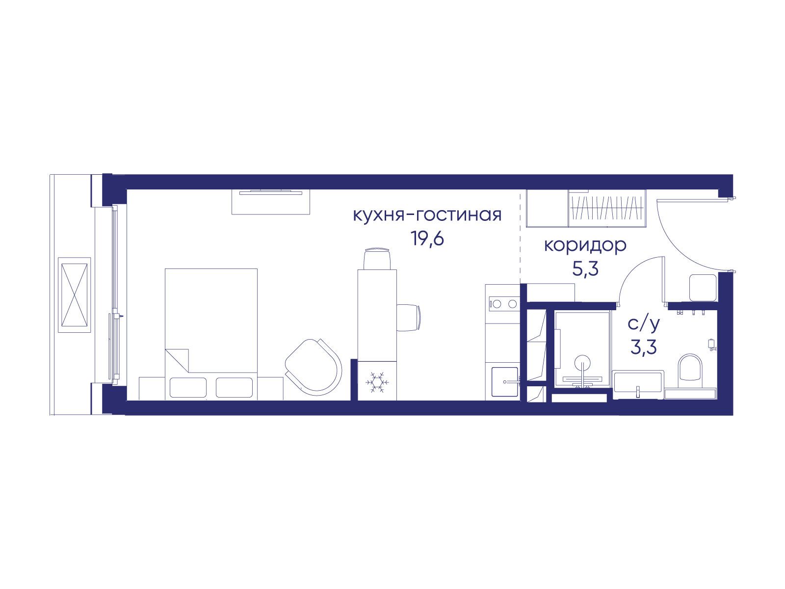 Квартира 0-комн., 28 м2, 3/19 этаж,