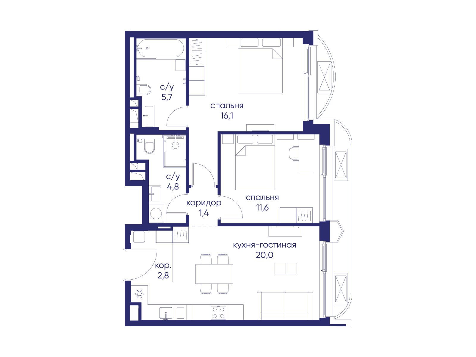 • Площадь кухни 20 м²
